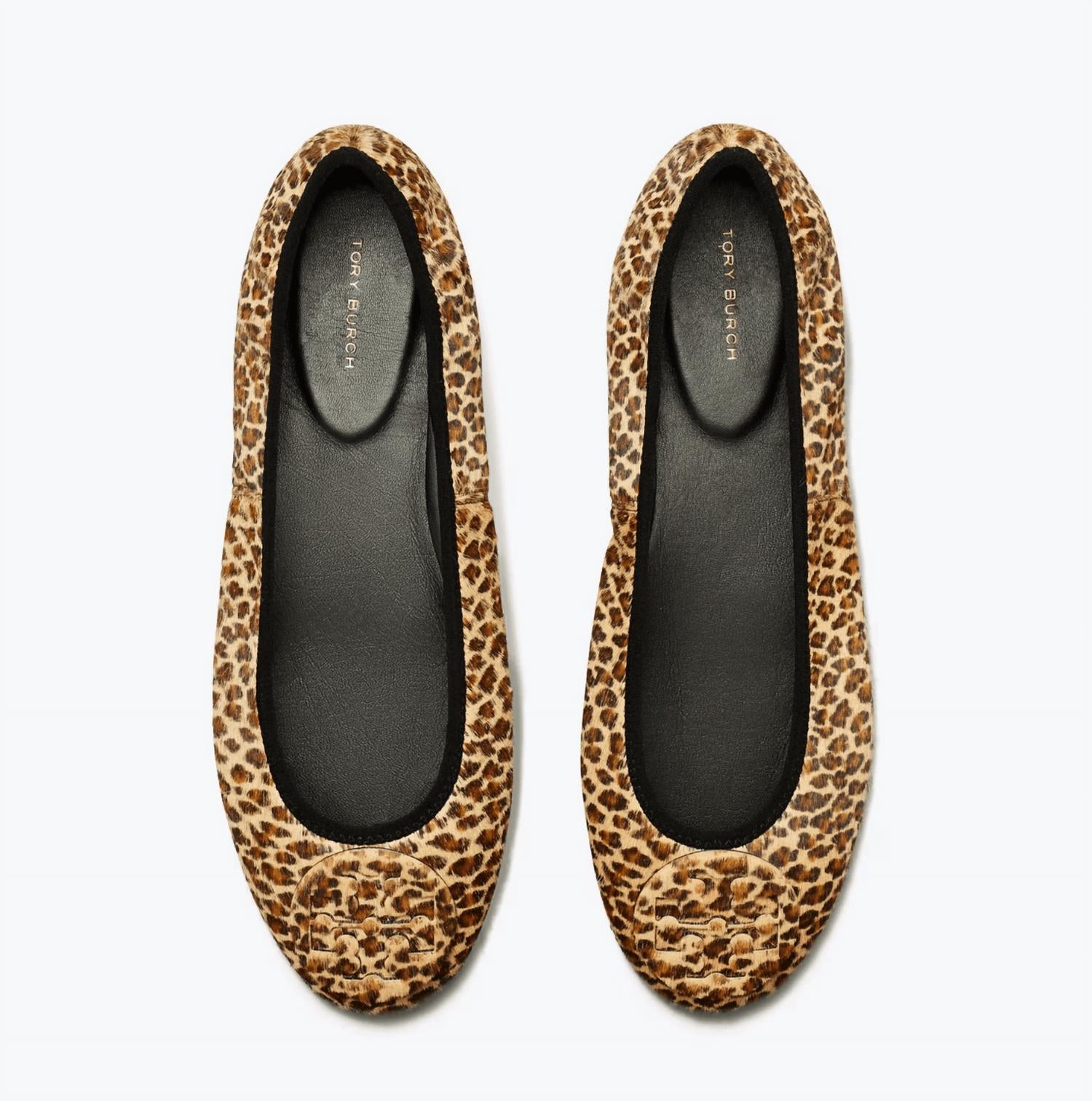A classic loafer that is both comfortable and polished. Elevate your collection with the Women's Reva Travel Ballet Flats by TORY BURCH, expertly crafted from luxurious leopard-printed calf hair. The flats feature a chic round toe, flat heel, elasticated topline, and an ultra-flexible sole, enhancing comfort and style. A nod to the iconic Reva design, these ballet flats are equipped with a beveled signature medallion, inverted heel cushion, and tire tread outsole, making them a seamless blend of timeless appeal and travel-ready convenience. Perfectly suited for a minimalist spring look, they're an ideal choice for any back-to-school occasion.
