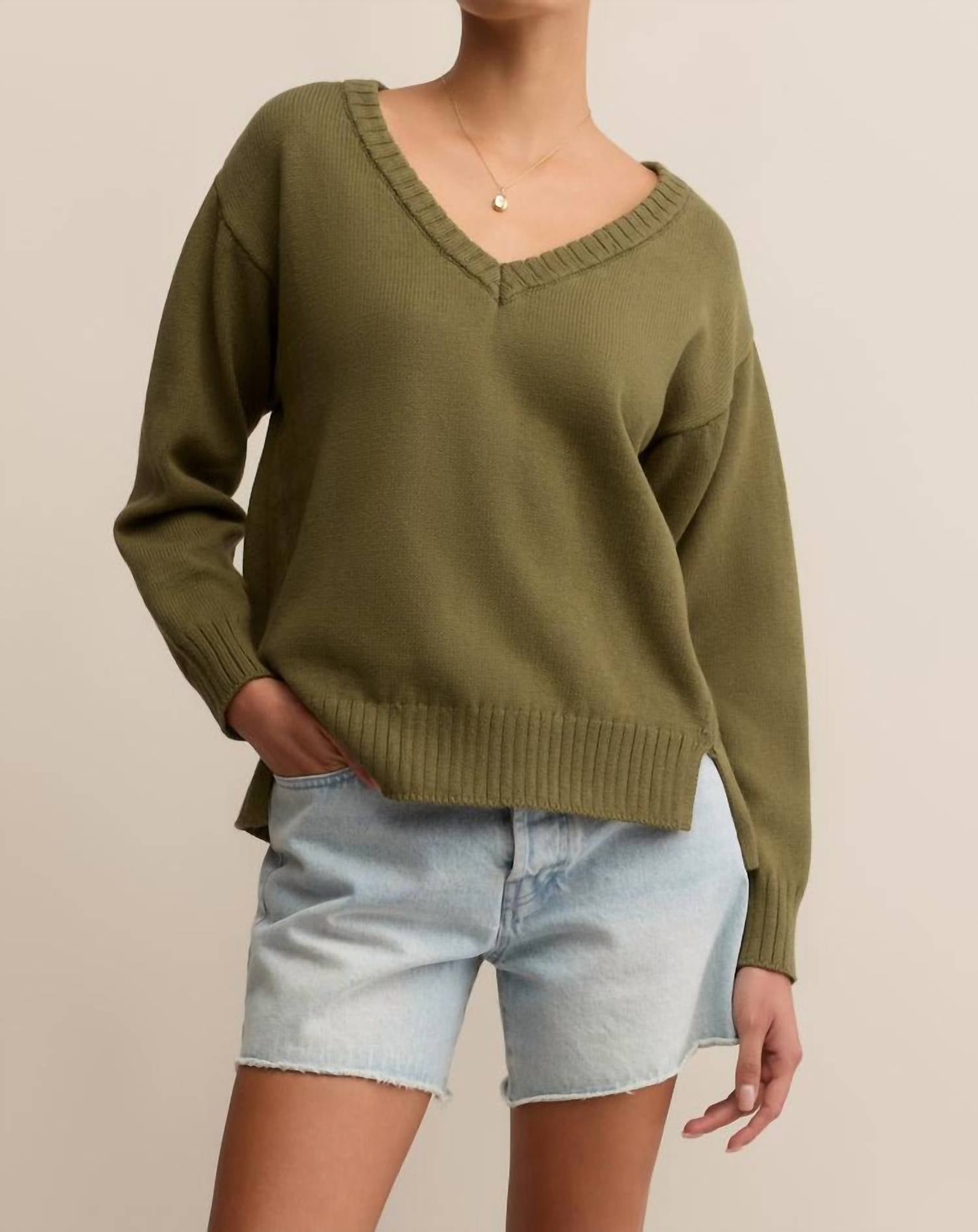 You'll be reaching for this comfy and classic v-neck sweater all season long. Introducing the All Around V-neck Sweater by Z Supply in a rich fern color, the perfect addition to your fall wardrobe. Crafted from 100% cotton, this solid-patterned piece features long sleeves and a flattering V-neckline. The sweater offers a convenient pull-on style for easy wear. For best results, machine wash and lay flat to dry.