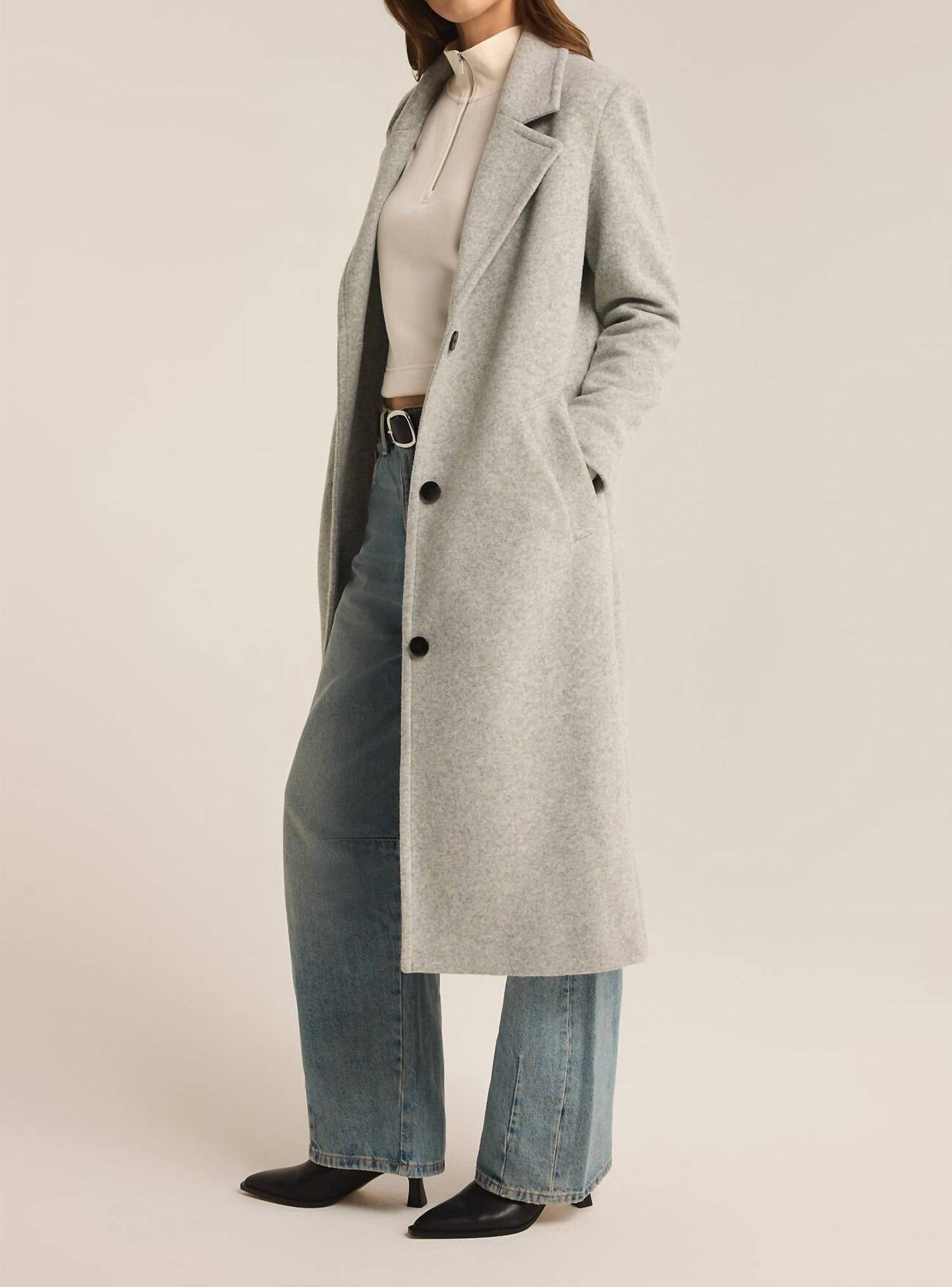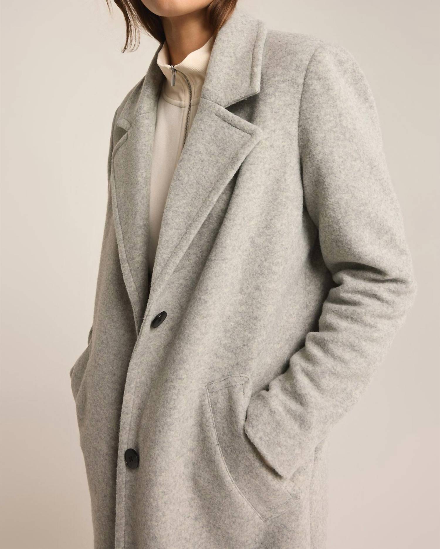 The perfect trench coat that you can throw over any outfit. Introducing the Conway Plush Coat by Z Supply, a must-have for winter sophistication in classic heather gray. This luxurious long-sleeve trench coat is crafted from 100% polyester, offering a plush and heavyweight feel with a midi length. The coat features a classic collared neckline, button closure, and practical side seam pockets, perfect for vacation or monochrome styling. Enjoy easy maintenance with machine wash care instructions, while the lined interior ensures comfort throughout the cooler months.