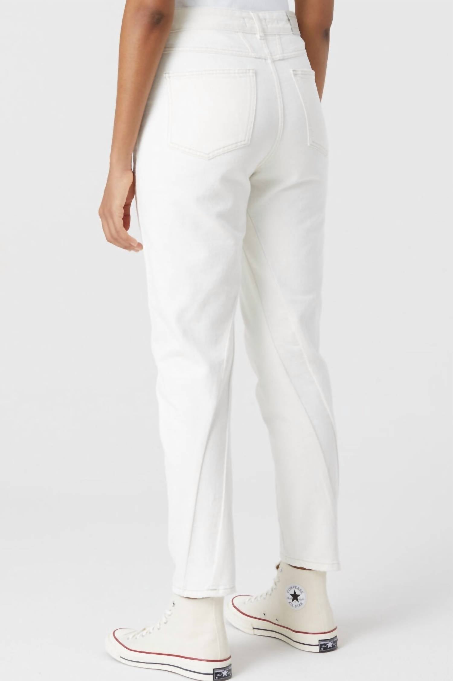 New relaxed fit: style Curved-X with an O-shape and double waistband made of strong Italian ecru denim. Natural-coloured look with subtle contrasting seams, decorative button with a pearl look and leather patch. Relaxed fit at mid waist with a tapered leg and cropped length. Fit: True to size. 100% cotton.