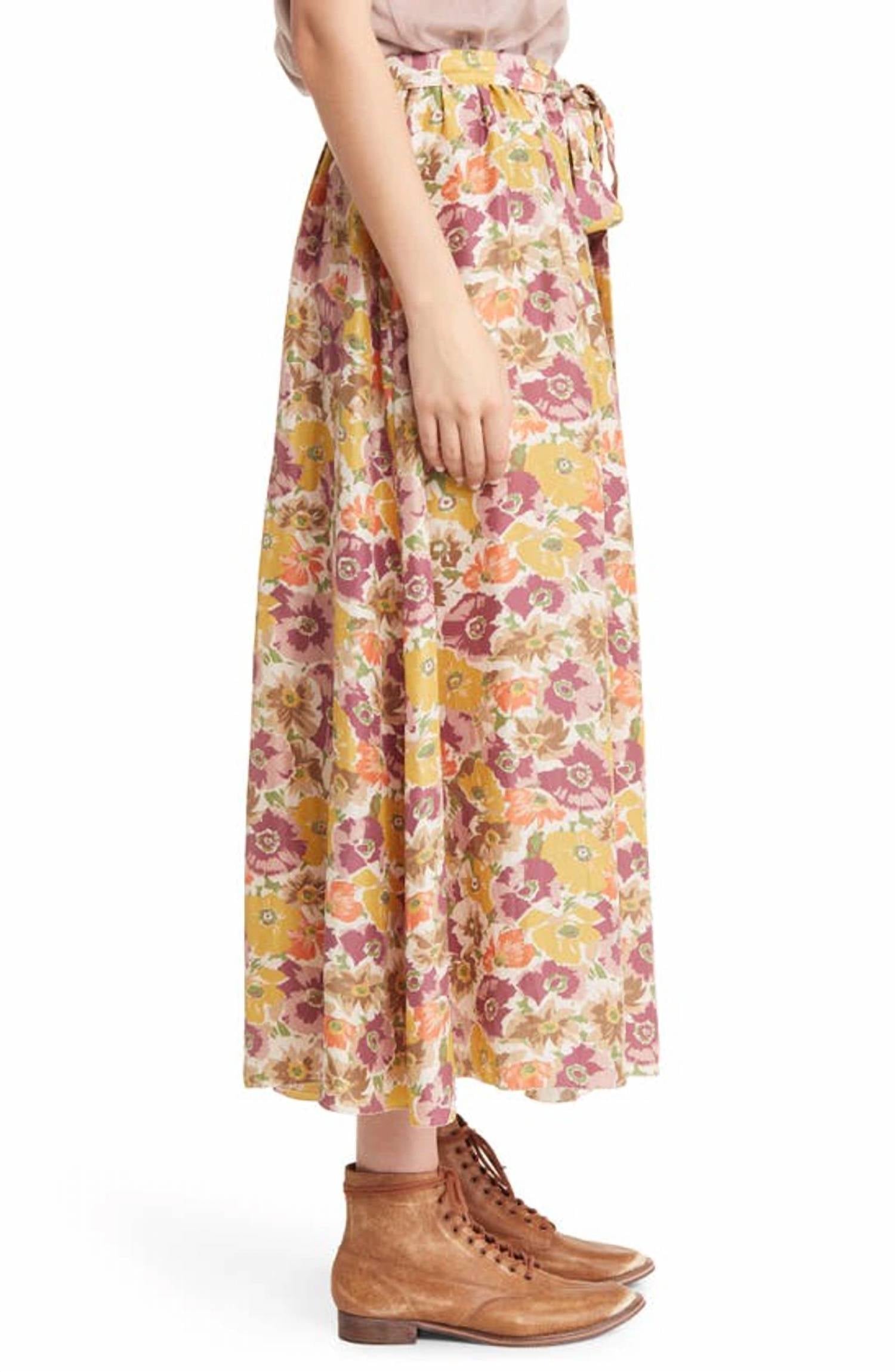 Featuring a small elasticated waistband with a silk sash that can be wrapped to tie at the natural waist, a sweeping ankle-length hemline, and an easy pull-on design. Fabric: 100% Silk. Dry clean. Size 2 Length 35.5".