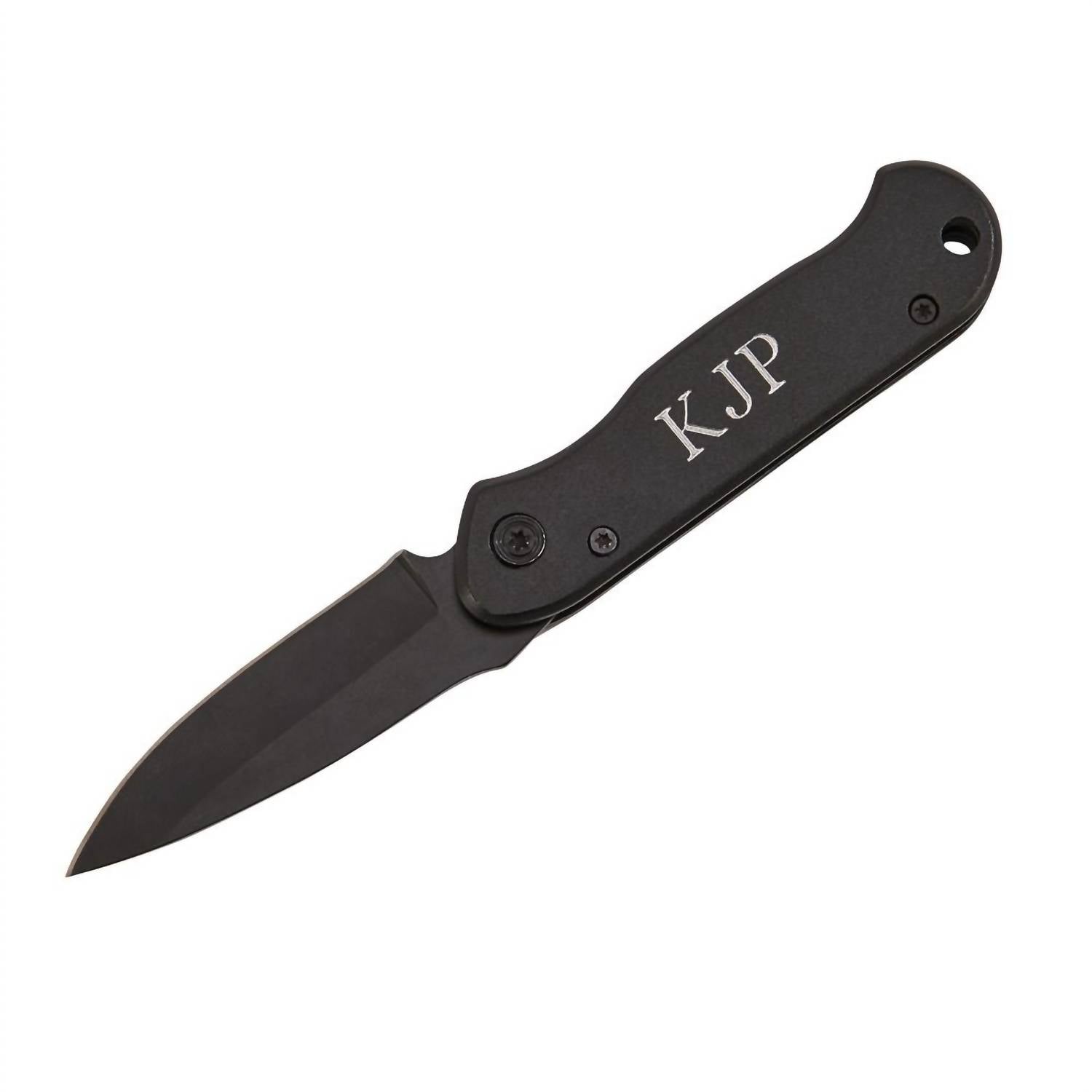 Locking Folding Pocket Knife locks in place when the blade is fully opened, release the lock with the push of your thumb to fold the blade back inside. Pocket knife features a stainless steel blade and aluminum metal handle with all black finish. Knife measures approximately 3.5 inches when folded and approximately 6 inches long when opened. Ships in protective packaging.