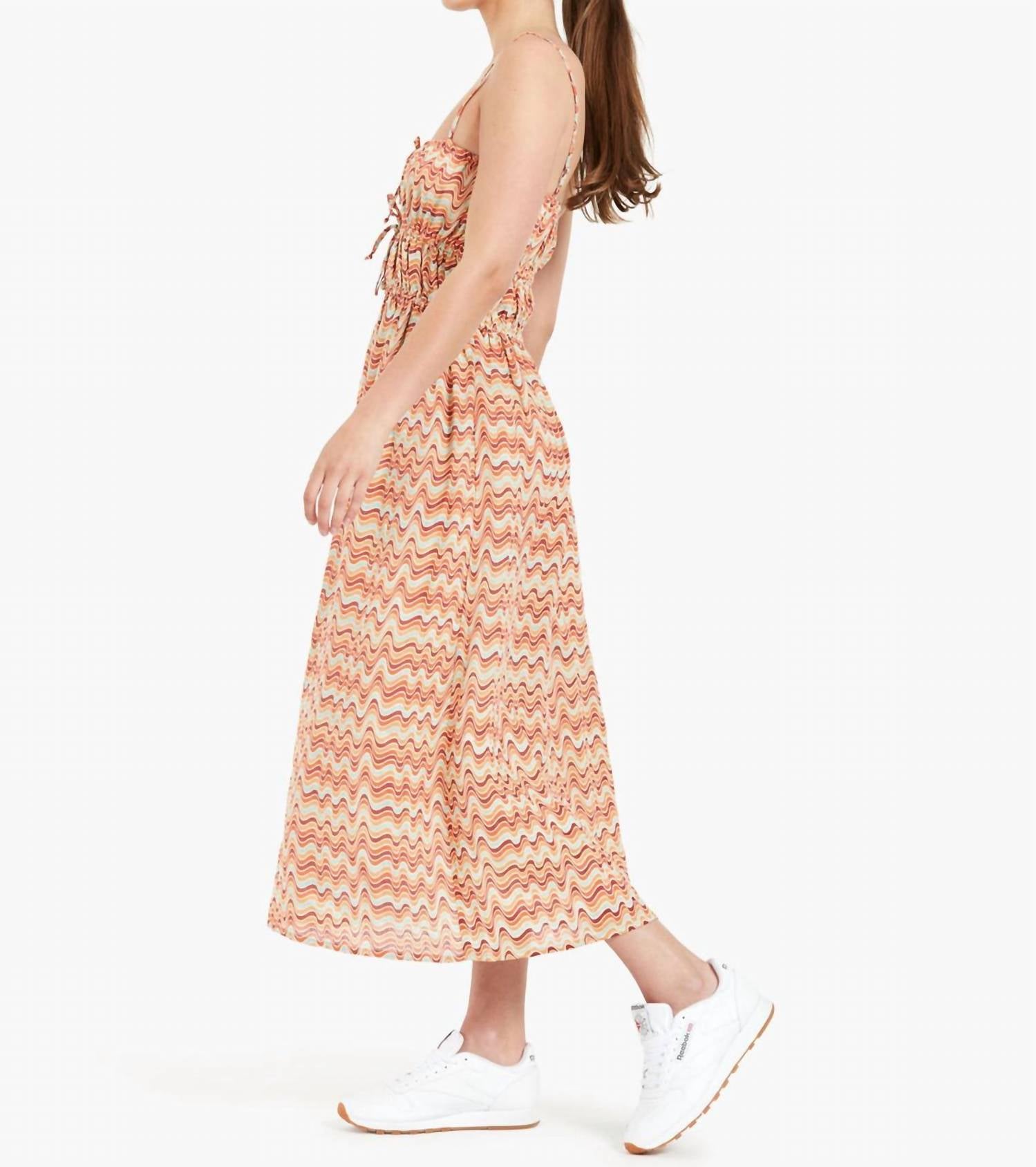 Slip style sundress. Adjustable over-shoulder straps. Tie detailing on the bust. Elasticated seams in both the neckline and bodice. Fully lined. 100% Linen. This garment is handmade, hand-dyed & hand-printed.