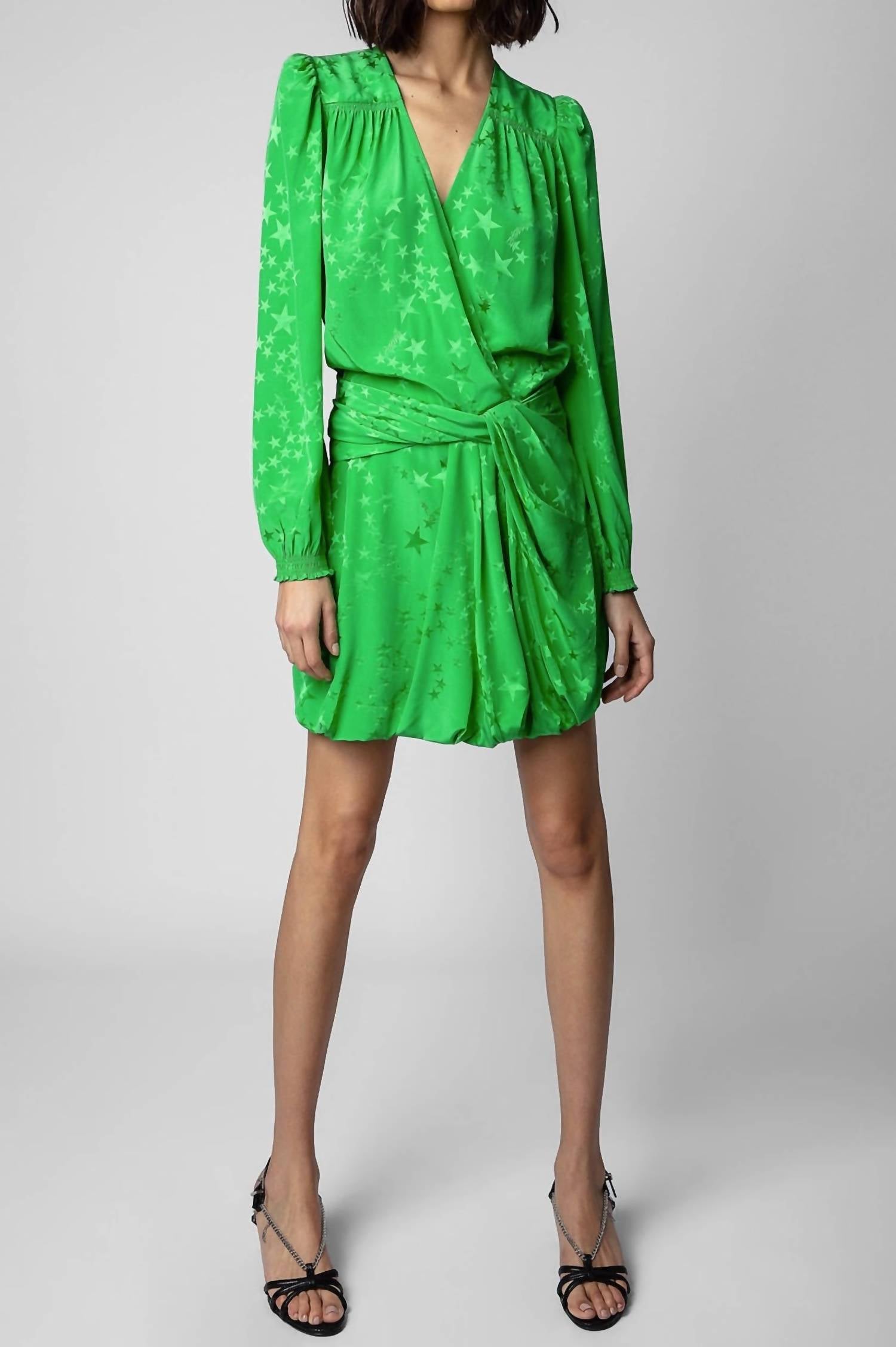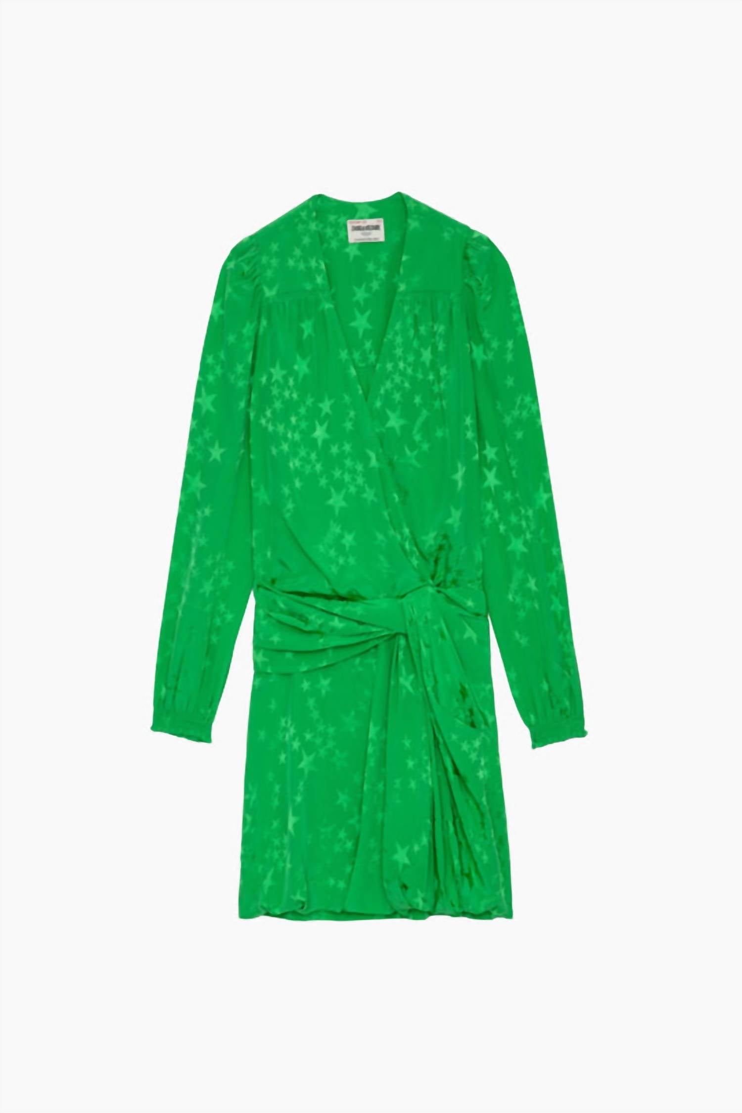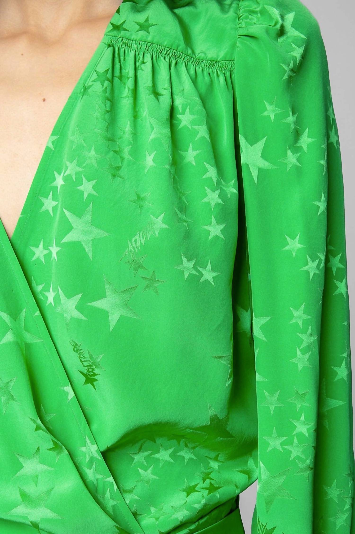 Jacquard with stars. V-neck. Tied at the waist. Draped effect. Long sleeves. 100% Silk.