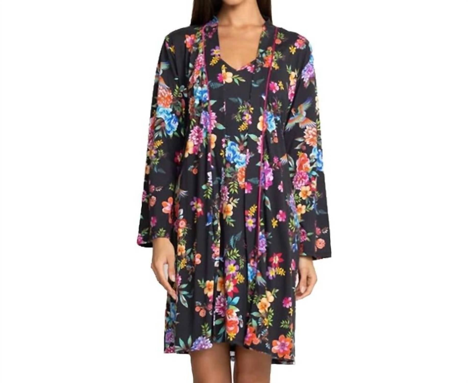 This luxurious long sleeve robe is crafted entirely from cotton, offering comfort and breathability. With a length of about 39" from shoulder to hem, it features a chic shawl collar and a convenient self-tie belt for a customizable fit. Requires hand wash care to maintain its vibrant allure.