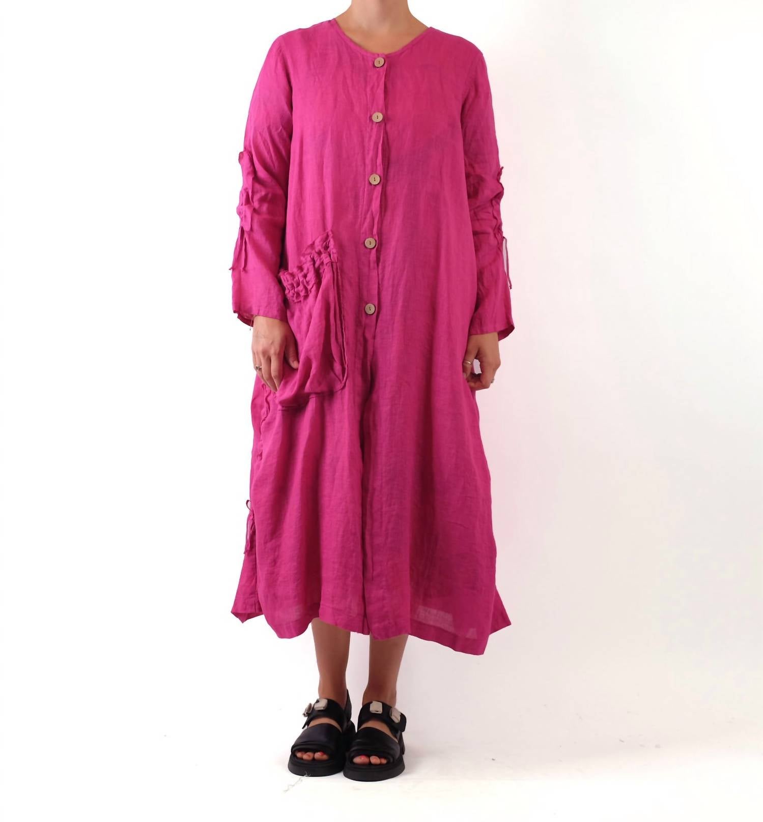 When comfort and style come together seamlessly. Discover the V-neck Long Duster by Bodil, an elegant addition to your spring vacation wardrobe in charming Petal Linen. With long sleeves and a solid pattern, its relaxed fit is perfect for layering over any outfit. The garment is crafted from 100% linen, offering a luxurious feel and breathable comfort. This stylish piece ranges in bust measurements from 42” in XS to 52” in XL, with a length from shoulder to front hem up to 51.5”.