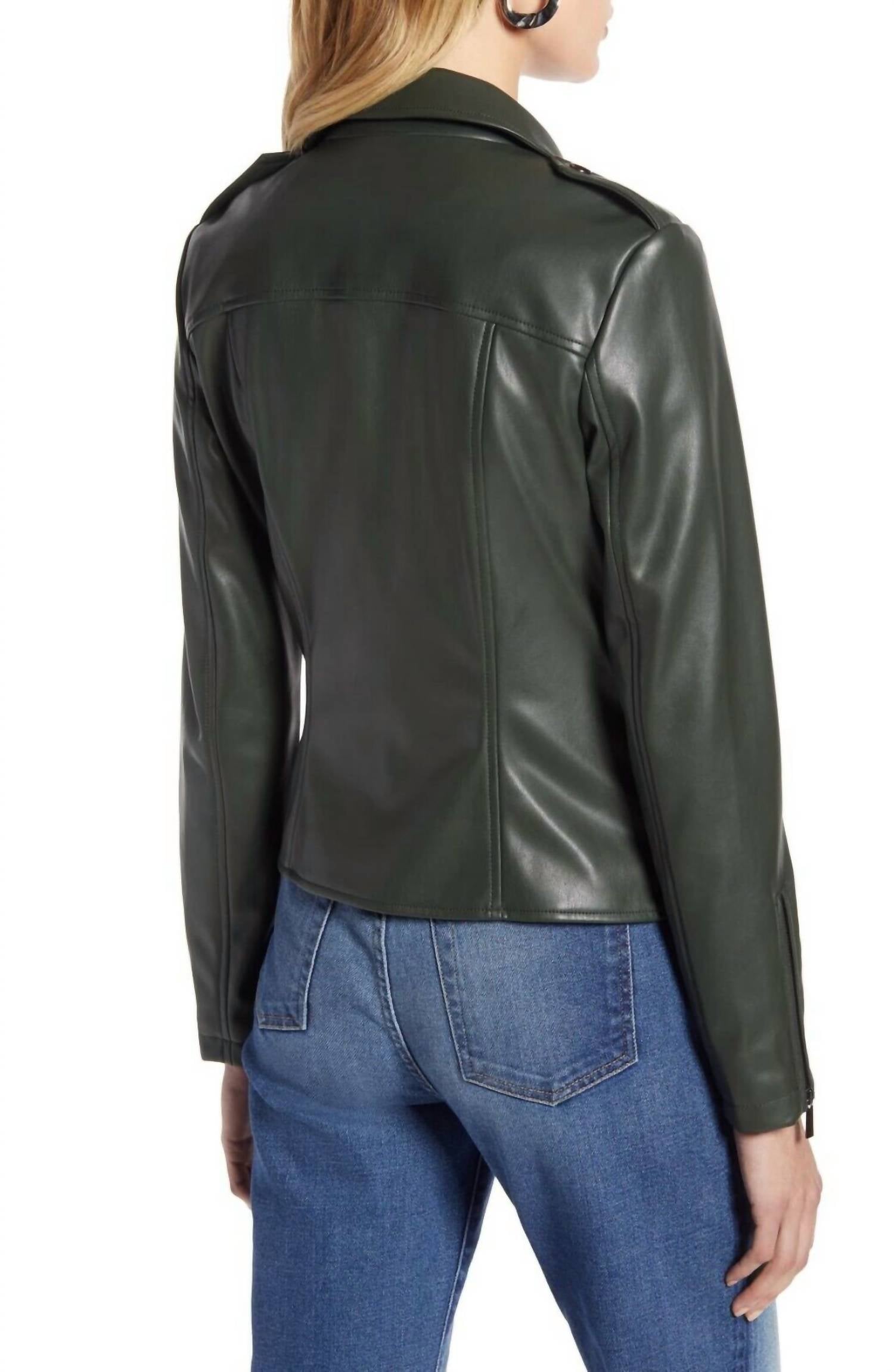 Everyone needs a leather jacket like this in their closet. Step out with confidence in the Faux Leather Motorcycle Biker Moto Jacket by Halogen, where edgy meets elegance in dark green. This women's leather jacket boasts a sleek faux-leather finish and features long sleeves with zippered cuffs for an added touch of flair. Crafted from 100% polyester with a 100% polyurethane coating, it has a practical front zip closure and is fully lined for comfort. The jacket measures 22" in length, with shoulder, chest, and sleeve dimensions of 17”, 20”, and 25” respectively, and includes side-zip and front flap pockets for all your essentials.