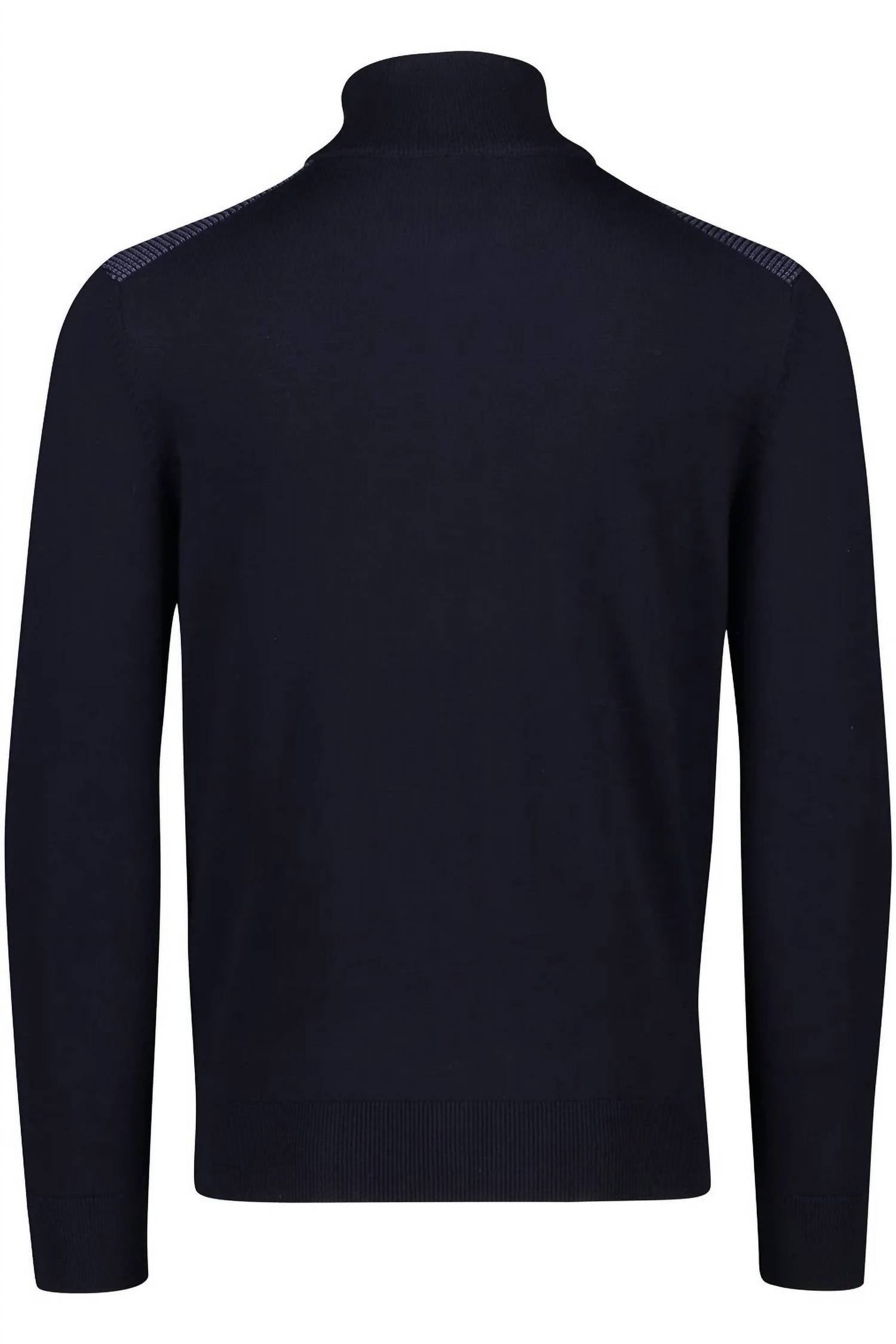 Distinguished in a rich dark blue hue. Features long sleeves. Crafted from 100% virgin wool, offering unmatched warmth and comfort. Regular fit and attractive knitted texture make it both functional and fashionable. Care instructions include machine washing for easy maintenance.