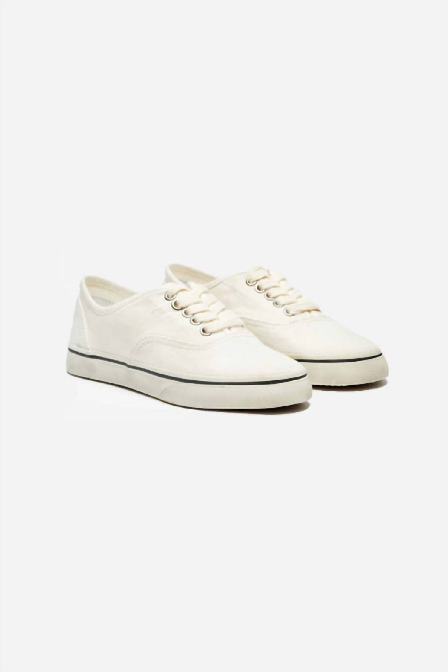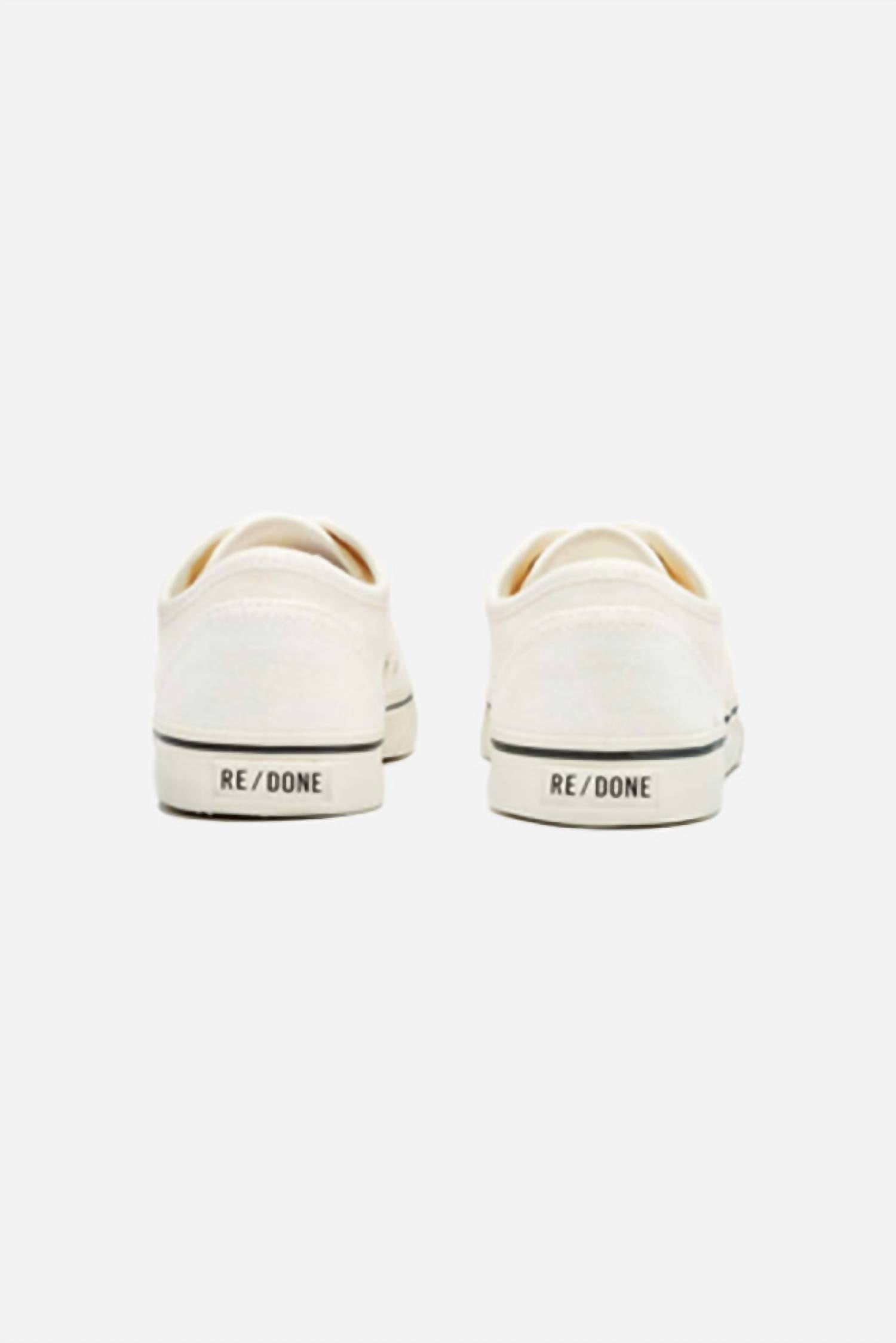 Vintage inspired skate sneaker. Washed canvas upper. Raised heel pad for extra height. RE/DONE's iconic branding on the back of the heel. Upper: 100% Cotton.