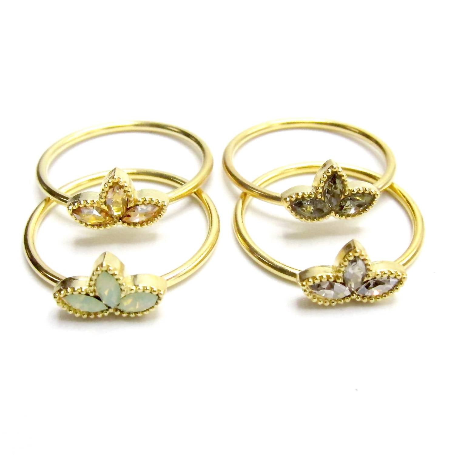 Sterling Silver and 18k plated Sterling. Made with Genuine Swarovski Crystals. Fits Approx. Sizes 6,7 & 8. Made in USA.