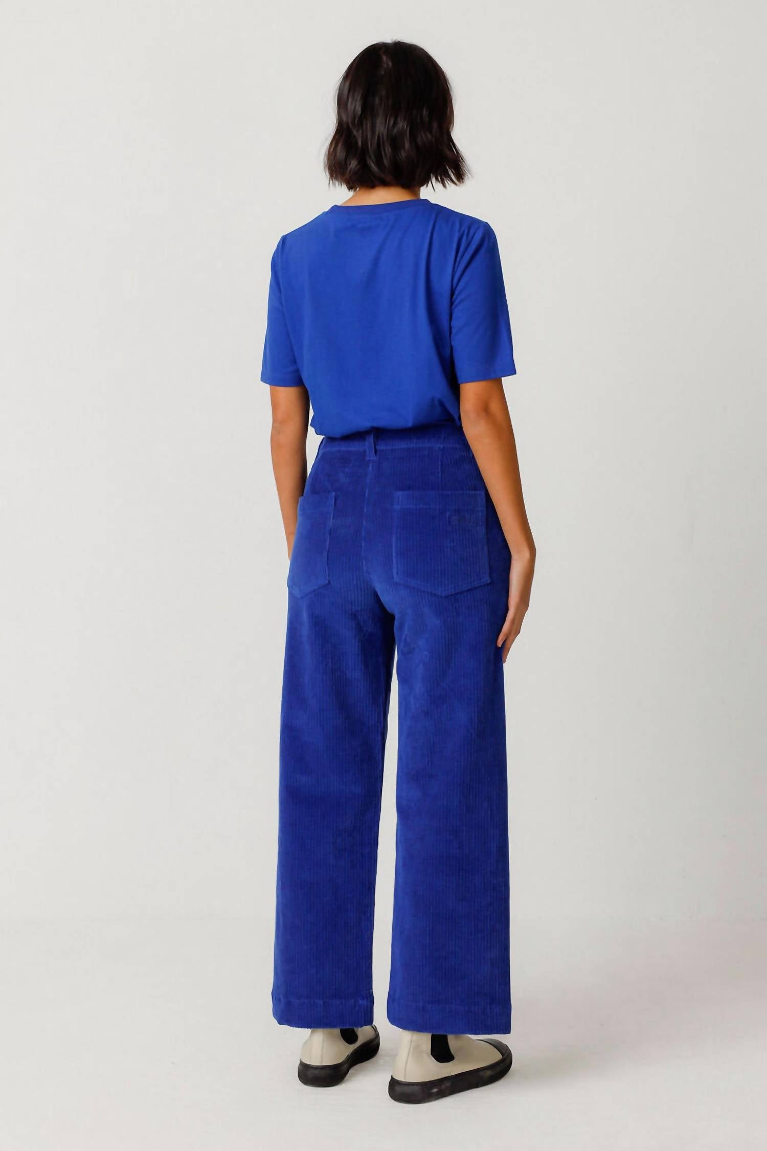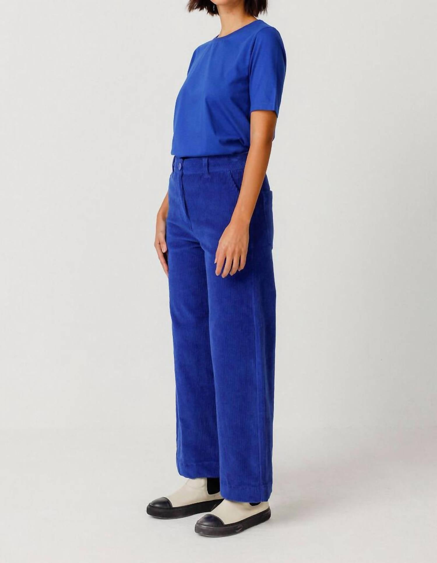 A perfectly tailored straight leg that you'll want in every color! Introducing the Leartza Pant by SKFK, a thoughtful blend of classic style and eco-conscious design in rich indigo. These straight leg trousers feature a textured corduroy composition and ankle-length cut, complemented by a standard waist and functional back patch pockets. Closure: Front zip. Elevate your wardrobe sustainably with SKFK’s commitment to craftsmanship and environmental responsibility.