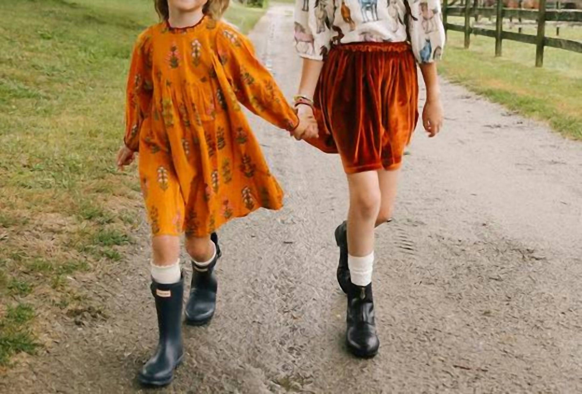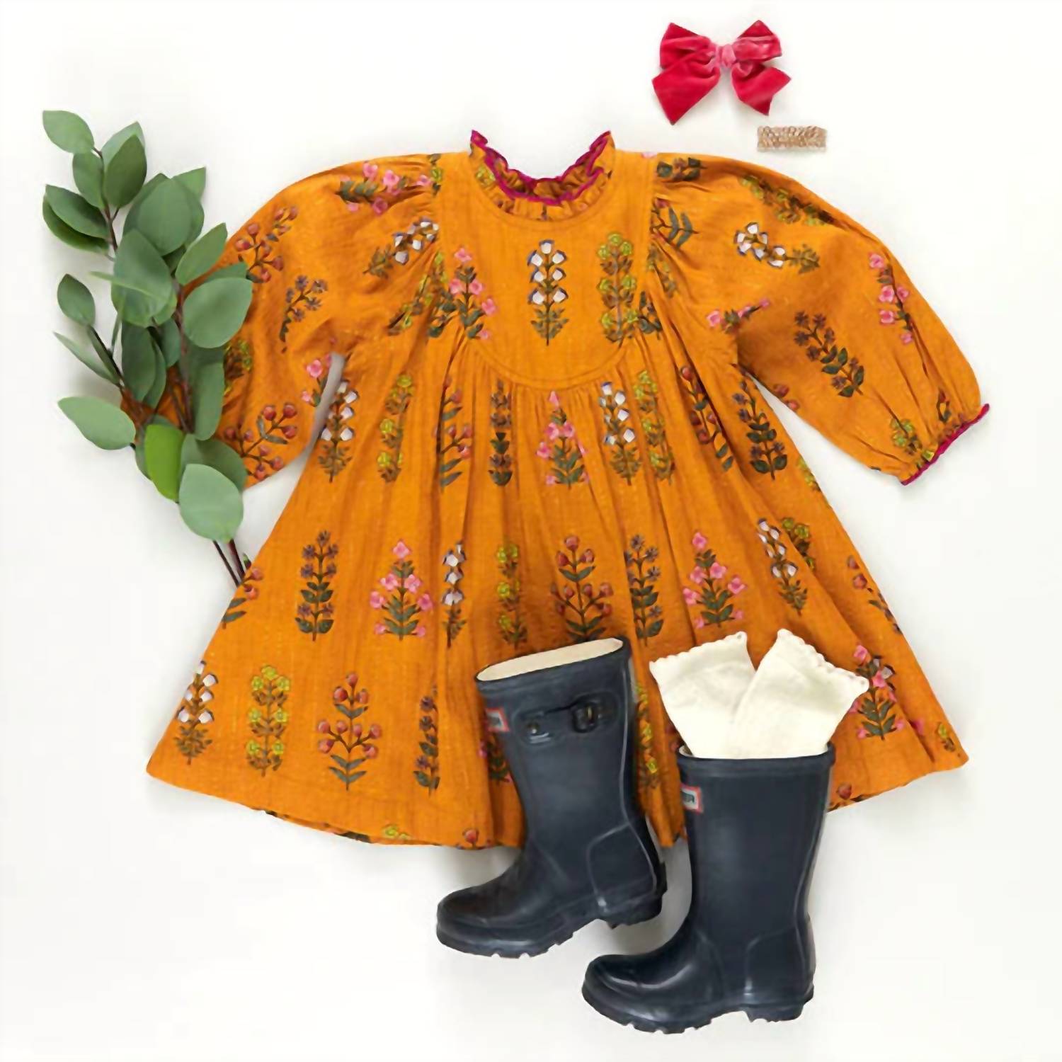 Botanical beauty: A hint of shimmer illuminates vibrant floral prints on our Girls' Brayden Dress-a brand-new silhouette! Designed in cotton flat gauze, it is accented by ruffled embellishment and solid contrast trim.