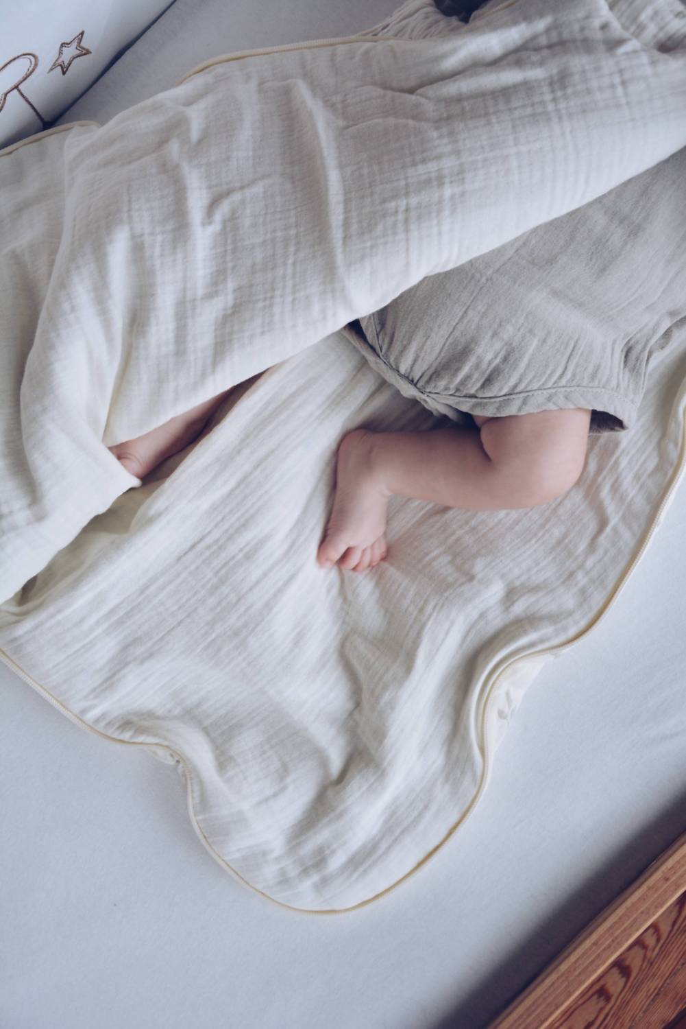 Wrap your little one in the ultimate comfort with the Baby Leaves Patterned Sleep Sack by Eli & Nev, designed in a soothing beige tone. This unisex sleep sack boasts soft, 100% cotton muslin fabric and an OEKO-TEX certification, reassuring parents of its quality and safety. It features a side to bottom zip and two snap buttons at the straps for easy use. Outer Shell and Lining: 100% Cotton OEKO-TEX certified; Filling: 100% Polyester OEKO-TEX certified.