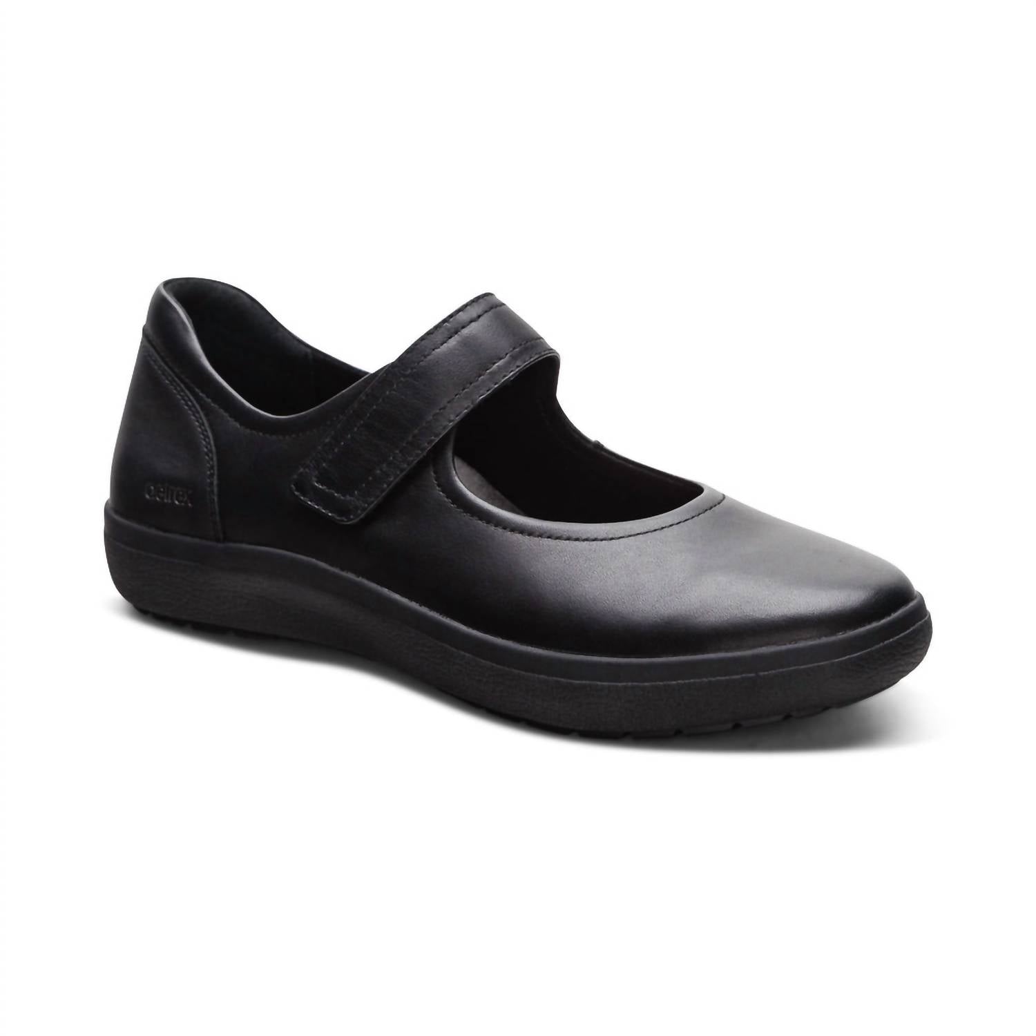 When fashion and function come together seamlessly. Step into style with the Women's Erica Casual Sneakers by Aetrex, designed for effortless comfort and a chic look. These sleek black sneakers are crafted from high-quality leather and feature a round toe for a classic appearance. With a low 1.25-inch flat heel, they provide the perfect blend of comfort and streetwear style, ideal for back-to-school season. Perfect for spring, these sneakers are a versatile addition to any wardrobe.
