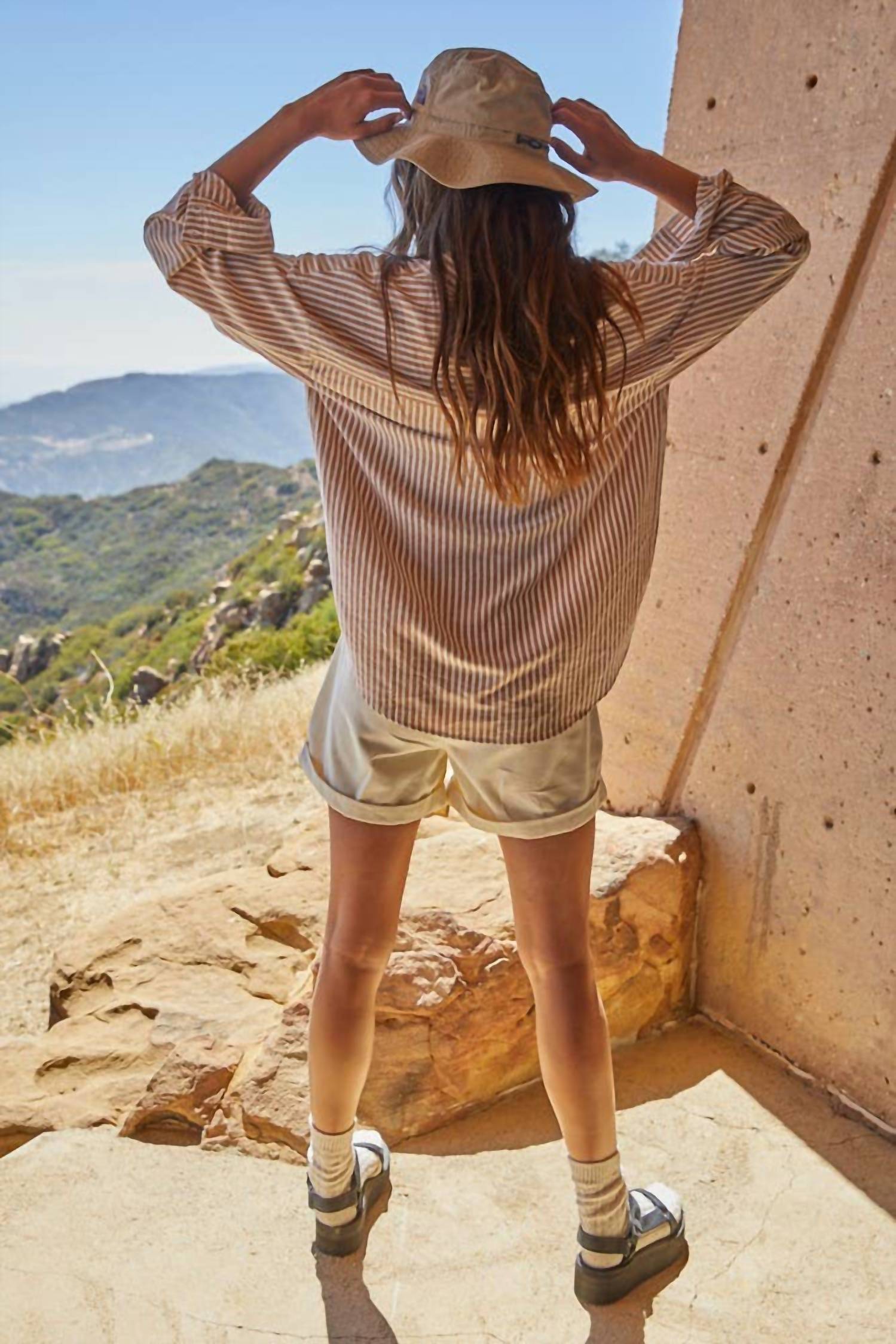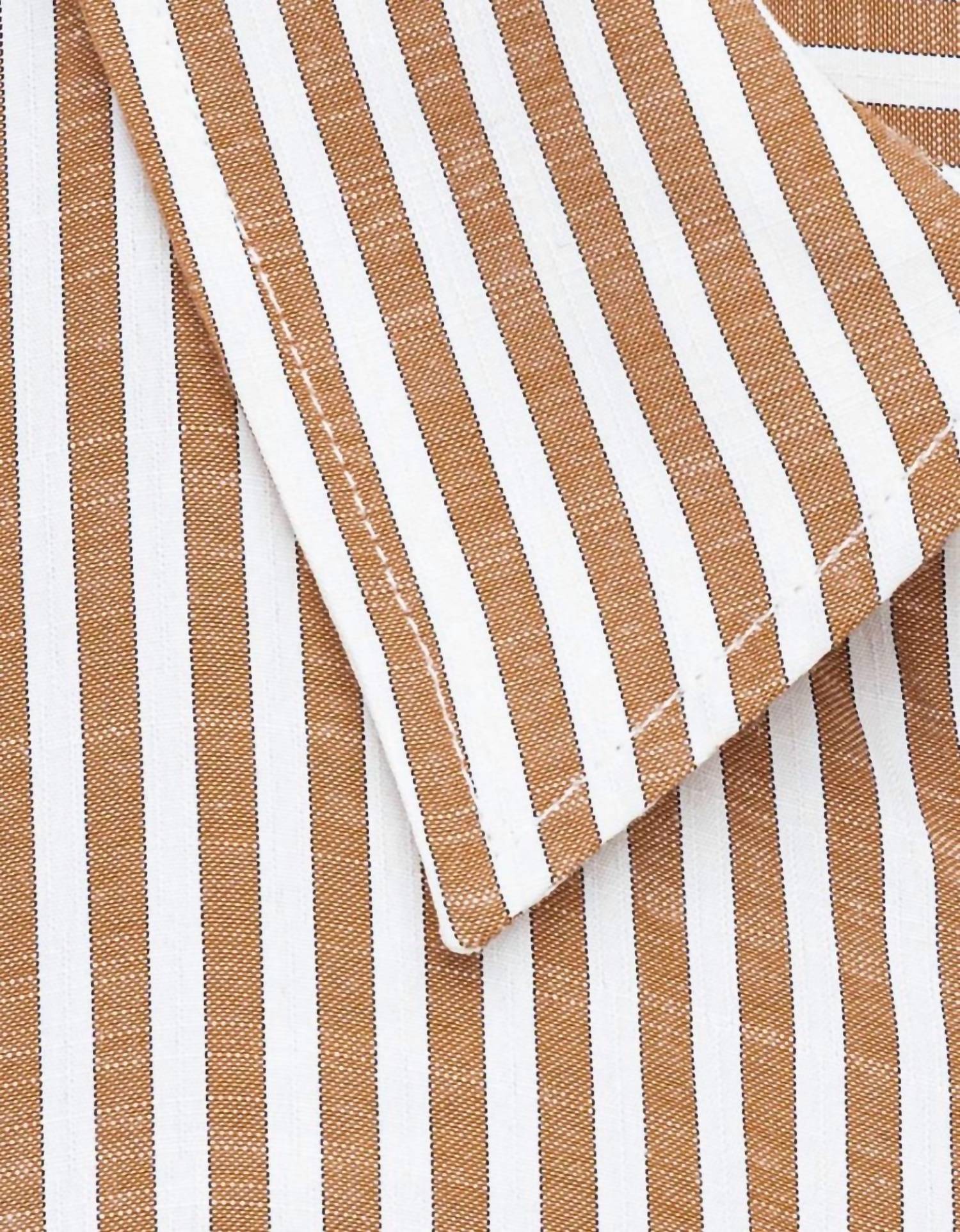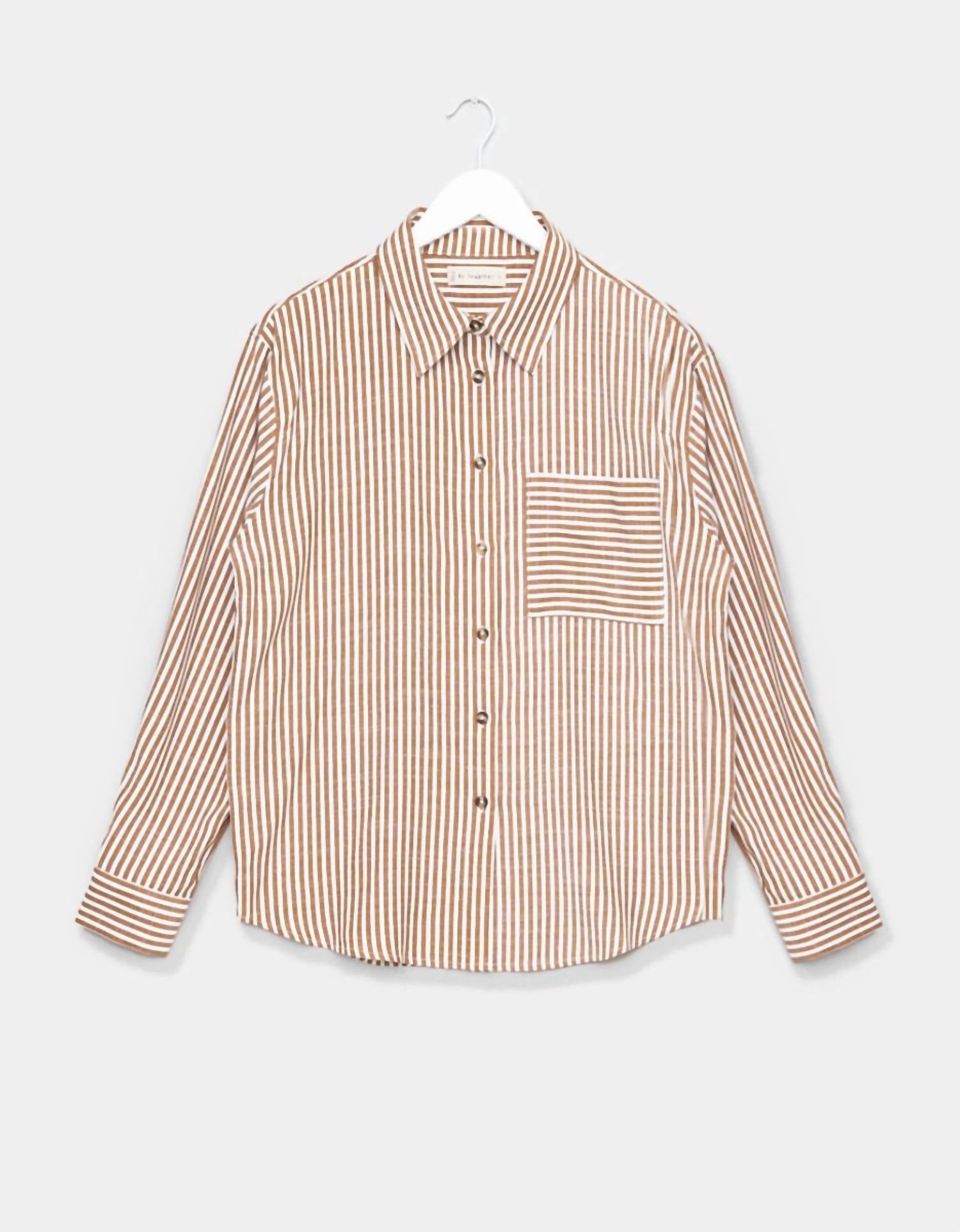 A classic button down shirt that will never go out of style. Introducing the Women's Woven Cotton Collar Neck Shirt by By Together, a must-have in a timeless brown striped pattern. Featuring long sleeves with rolled cuffs, a classic collar, and a front chest pocket, it combines style and functionality. Made from a soft cotton blend, this shirt is perfect for travel occasions in spring. Care for this versatile piece by machine washing and laying flat to dry.