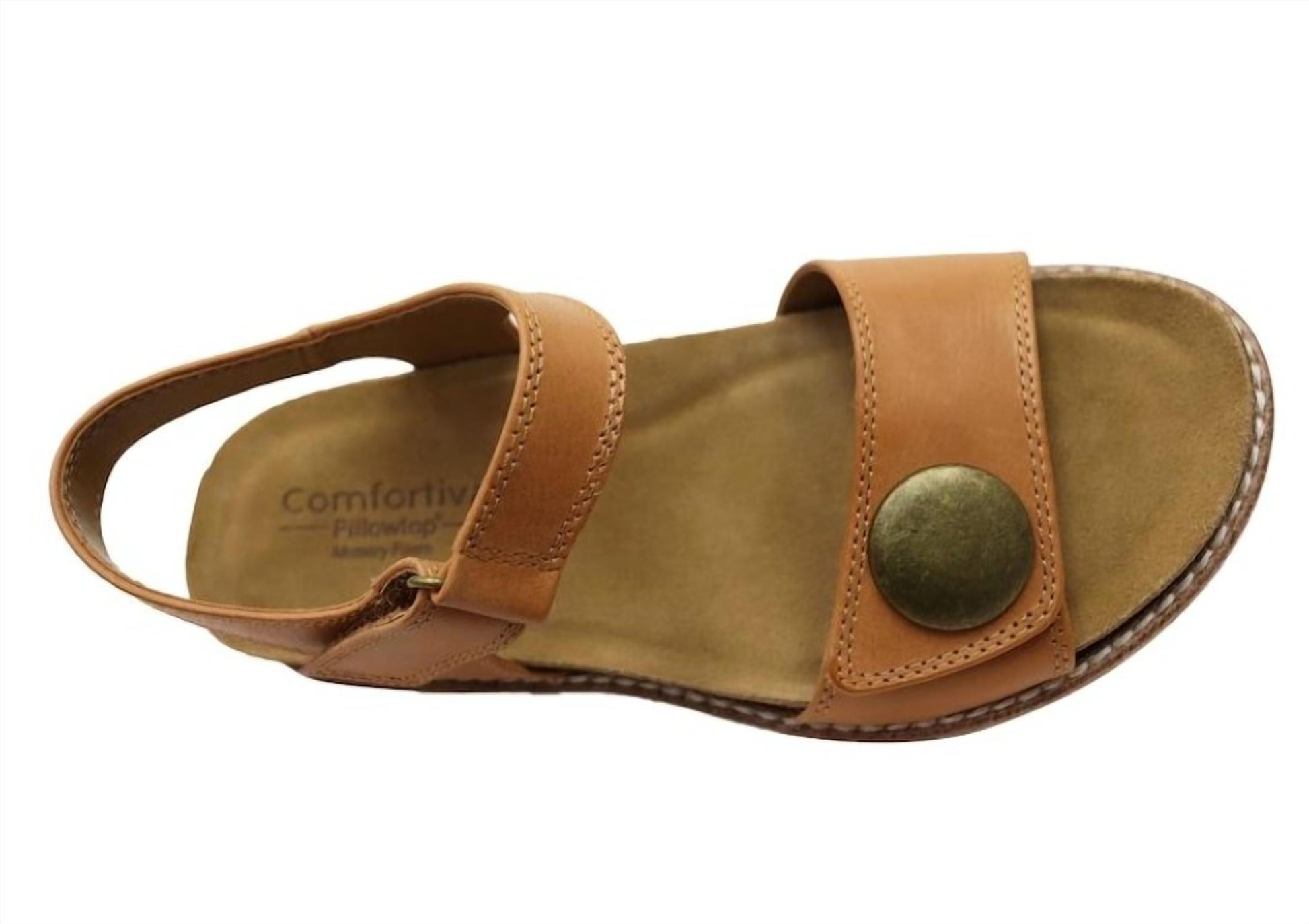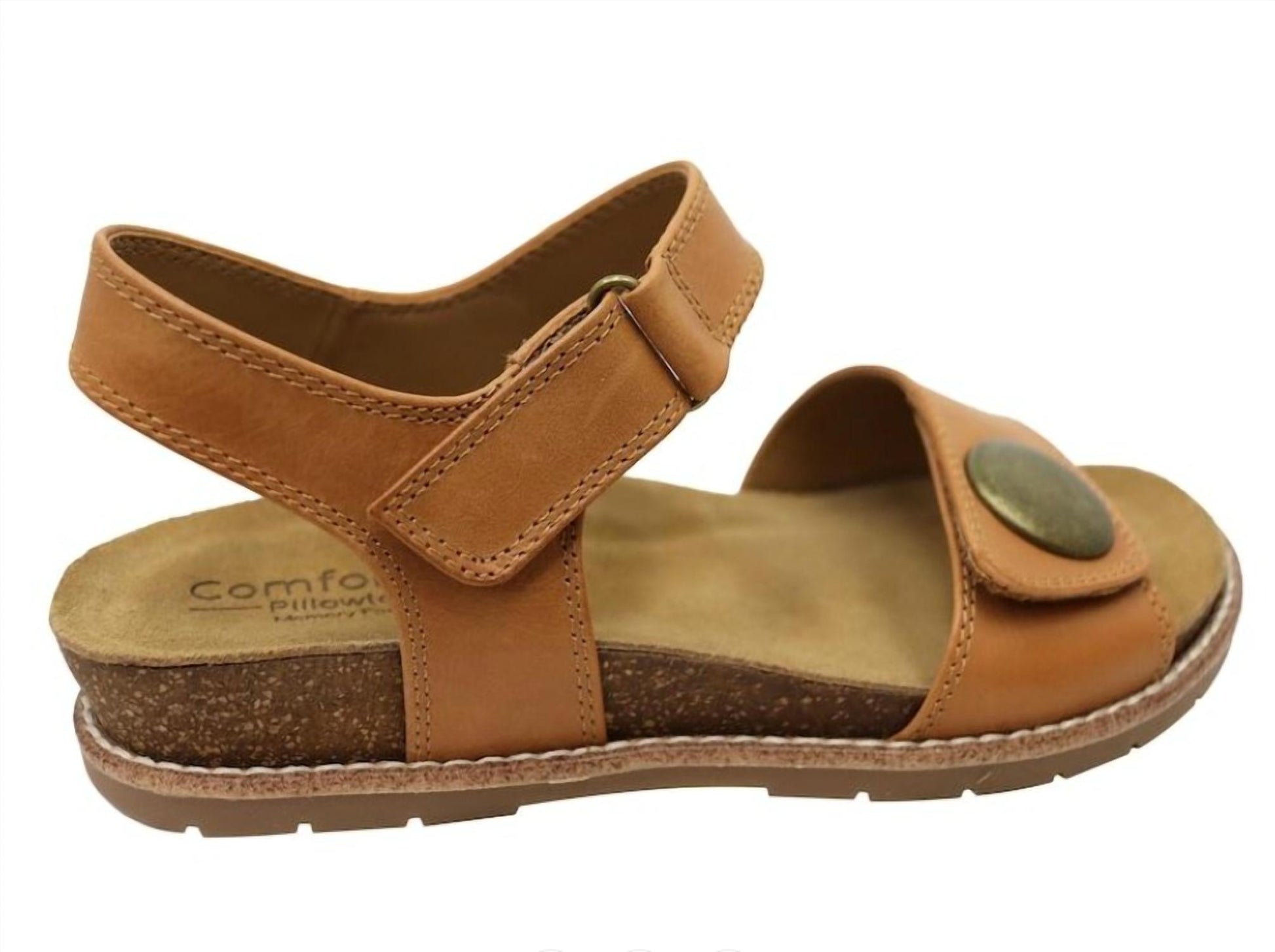 Flowy dresses, cropped pants, and even jumpsuits... this sandal works with them all! Discover the Women's Gwen Italian Leather Sandals by Comfortiva, designed for effortless spring style with their chic open toe design. Made from high-quality leather, these sandals feature convenient hook-and-loop closures and a comfortable 1-inch flat heel. The exclusive Pillowtop® memory foam footbed and molded anatomic cork midsole offer unmatched comfort, while the flexible, slip-resistant cleated TPR outsole ensures stability on any terrain. Available in a sophisticated Luggage Brown, these sandals will be your go-to choice for both style and comfort.