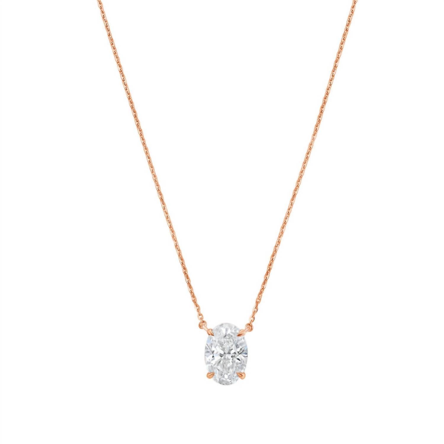 Both understated and impactful, you'll be reaching for this one-of-a-kind necklace season after season. Experience the elegance of the Diana M Jewels 1.00 Ct Lab-grown Oval-cut East–west Diamond Pendant Necklace. Crafted from 14kt rose gold, this fine necklace features a lab-grown diamond with a carat weight of 1.00, boasting a dazzling D-F color grade and very slightly included clarity. The oval-shaped diamond is securely set in a prong setting, accentuating its colorless brilliance. It is fitted with a lobster clasp for secure wear. This necklace epitomizes sophistication and meticulous craftsmanship, perfect for those who appreciate fine jewelry.