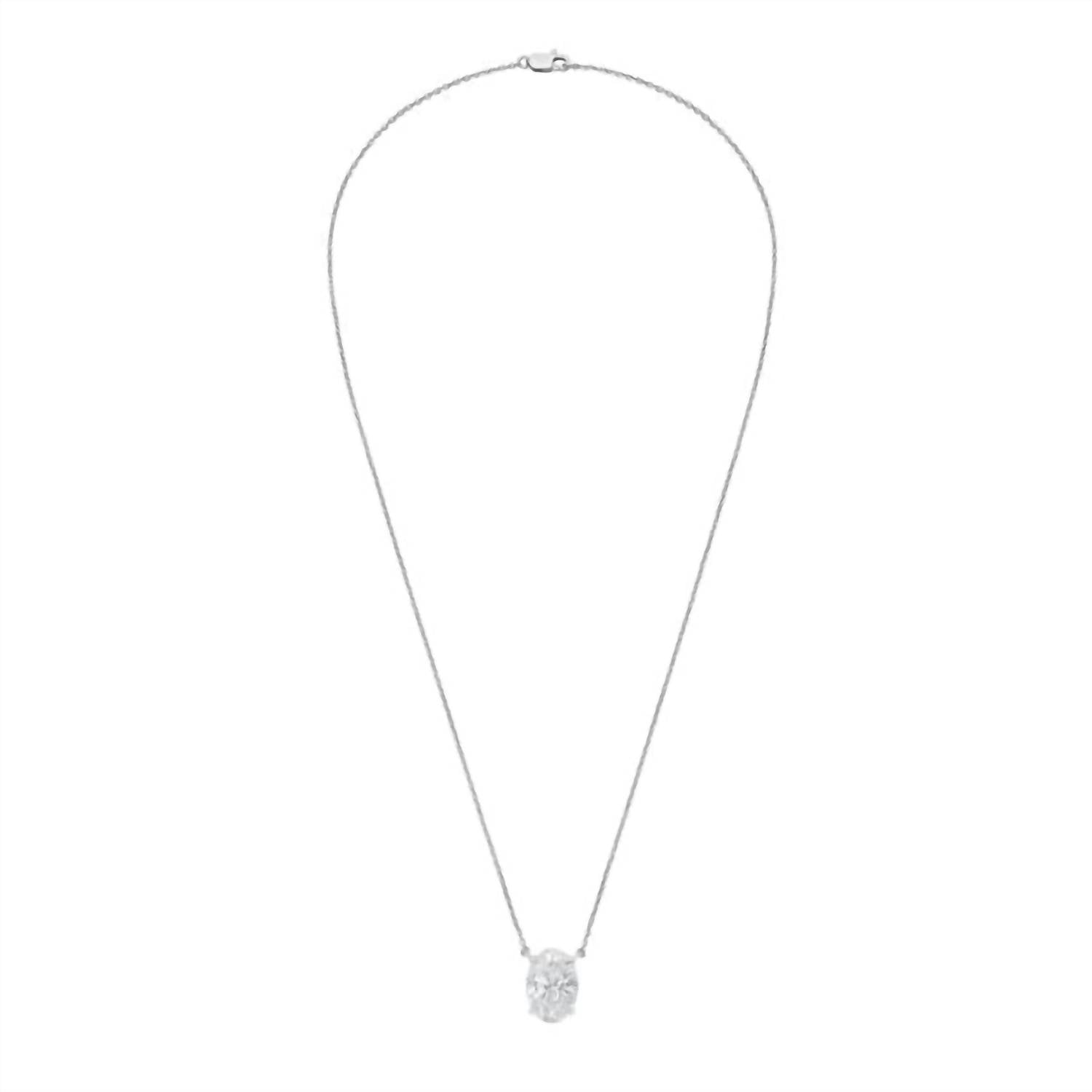 Both understated and impactful, you'll be reaching for this one-of-a-kind necklace season after season. Experience the opulence of Diana M Jewels' 4.00 Ct Lab-grown Oval-cut Diamond East-west Pendant Necklace. This exquisite piece features a 14kt white gold setting and is adorned with an oval lab-grown diamond of 4.00 carats, showcasing a premium D-F color grade and very slightly included clarity. The pendant's unique east-west orientation is set beautifully in a prong setting, secured with a lobster clasp. A refined choice for those who appreciate fine jewelry, this necklace is an April birthstone essential designed with distinction.