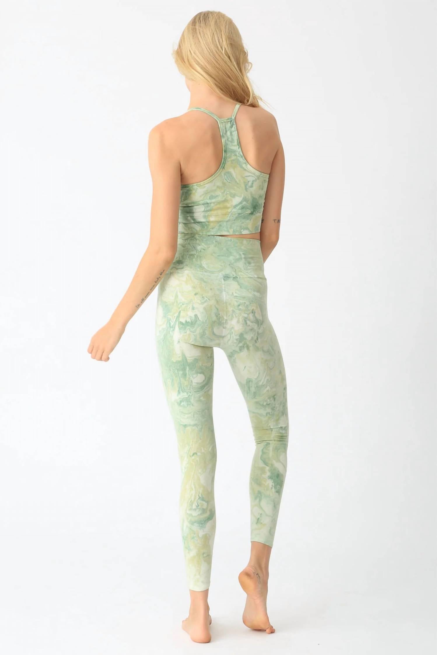 The legging you didn't know you needed and you won't want to take off. Elevate your workout ensemble with the Electric & Rose Sunset Leggings in Marbled Pistachio. These women's patterned leggings feature a pull-on closure and are crafted from a high-quality blend of 90% cotton and 10% spandex, ensuring superior breathability and flexibility. Ideal for spring athleisure, they are perfect for fitness routines, yoga sessions, or casual errands. Made in the USA, they are easy to care for with machine wash and low tumble dry instructions.