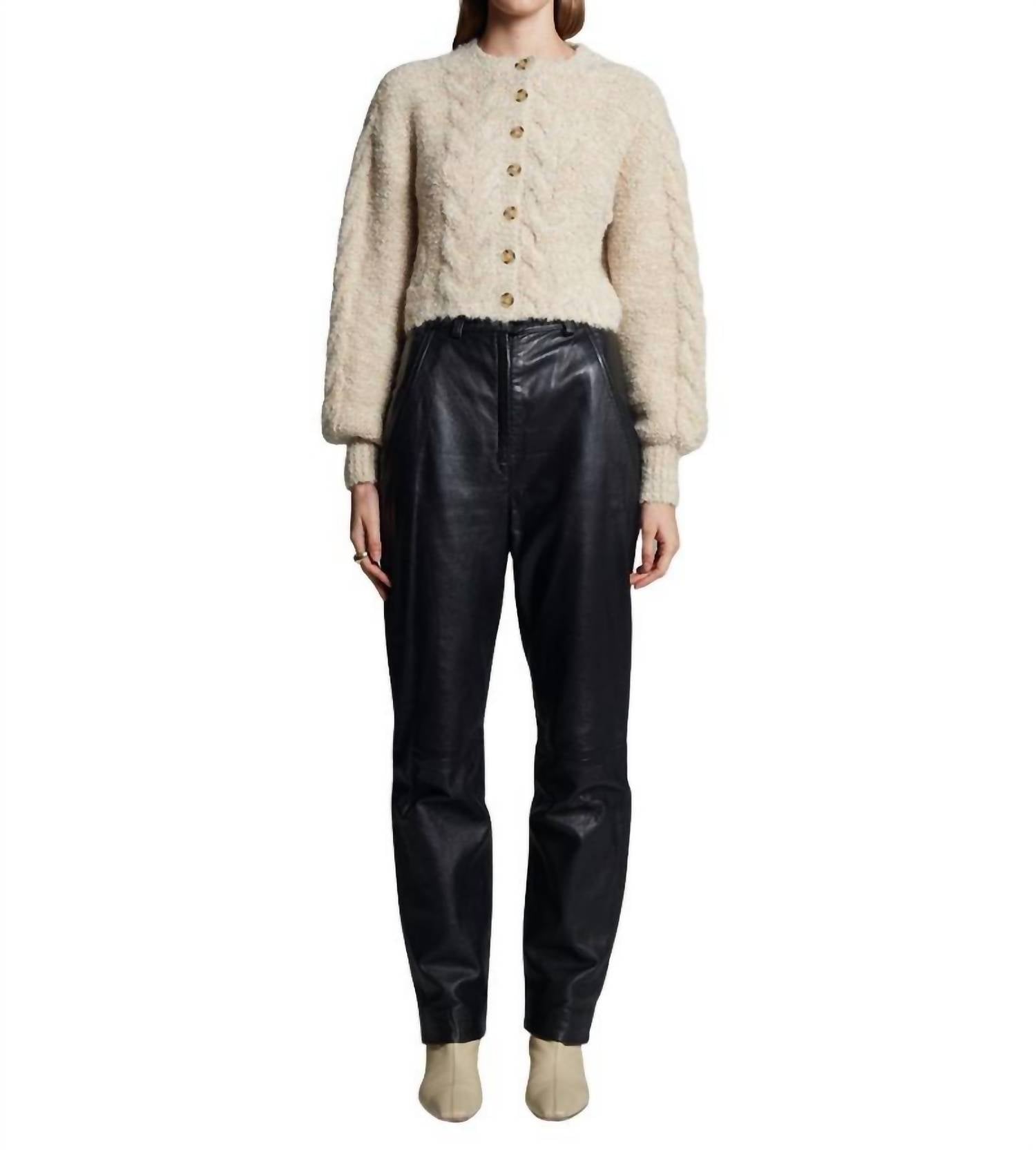 A classic fit that works just as good buttoned as it does left open. Embrace the comfort and style of the Skylar Cardi by ELEVEN SIX, crafted with care in Peru. This women's cardigan boasts long sleeves and a refined composition of 55% baby alpaca, 21% fine merino wool, and 24% polyamide, offering a cozy and textured feel. Designed in a medium-weight pale camel ivory tweed, it features a button closure and intricate placed horse-shoe cable stitches. With its ribbed trims defining the crew neck, cuffs, and hem, this patterned piece is perfect for spring travel. Care: Dry clean only.