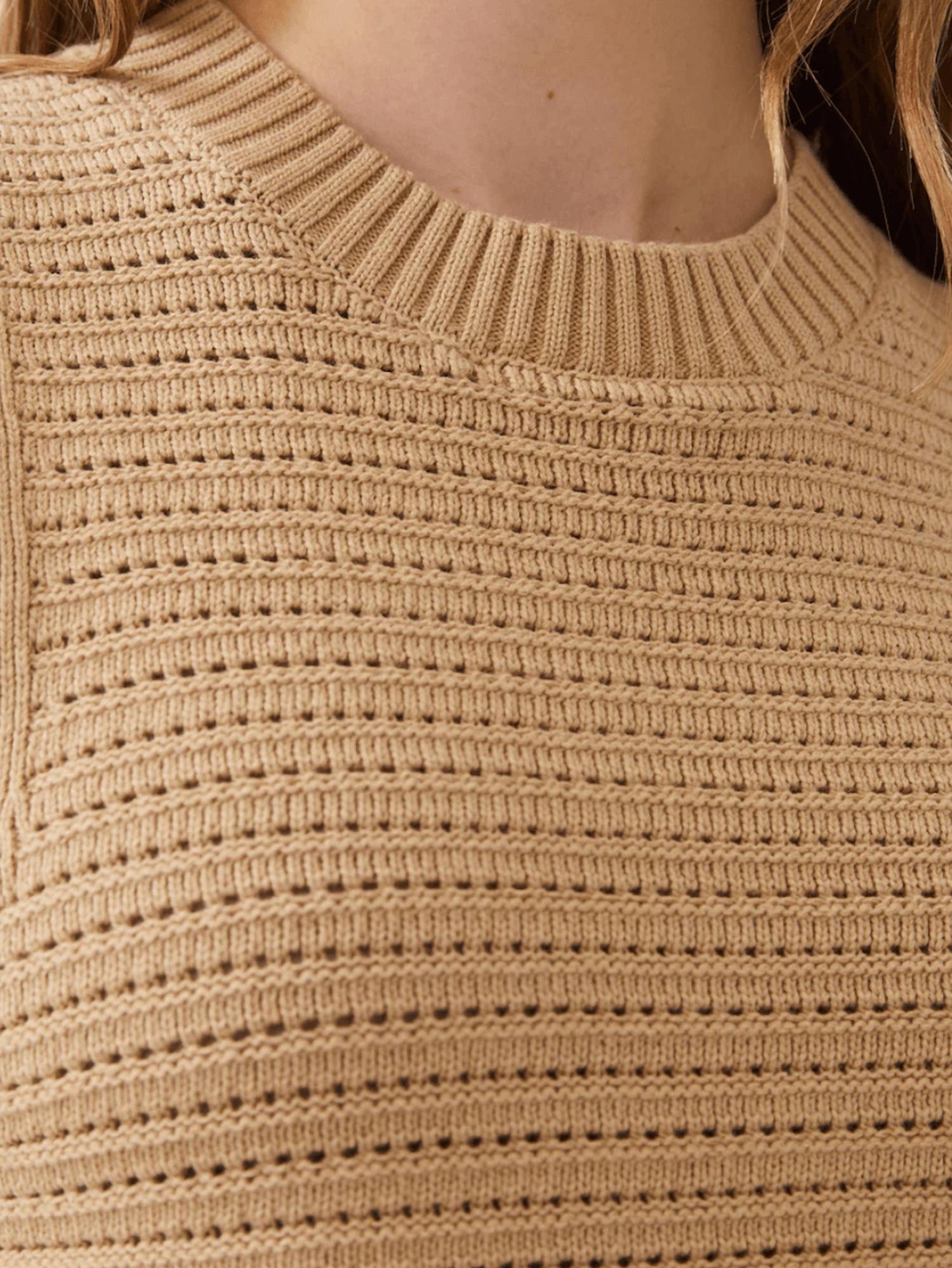 That extra layering piece you didn't know you needed! This sleeveless vest features a soft crochet knit material, designed with ribbed edges and stylish side splits. It offers a regular fit with a length of 20.87 inches and a classic crew neckline.