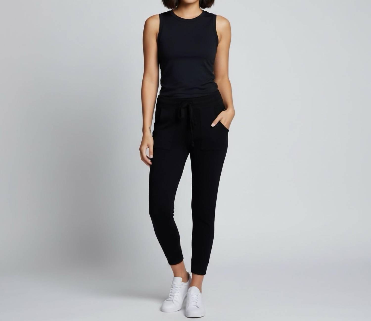 No gym necessary for these cool-girl joggers. Discover ultimate comfort and style with the Greyson Clothiers Scarlett Koko Shepherd Joggers in sleek black. Designed for versatility, these joggers feature a drawstring waistband for a perfect fit and convenient patch pockets on the back. Made from a luxurious blend of 70% wool and 30% cashmere, they boast quick-drying, four-way stretch material perfect for any active lifestyle. Featuring a 28" inseam, these pull-on joggers are ideal for minimalist, chic looks this spring and are best suited for dry cleaning.