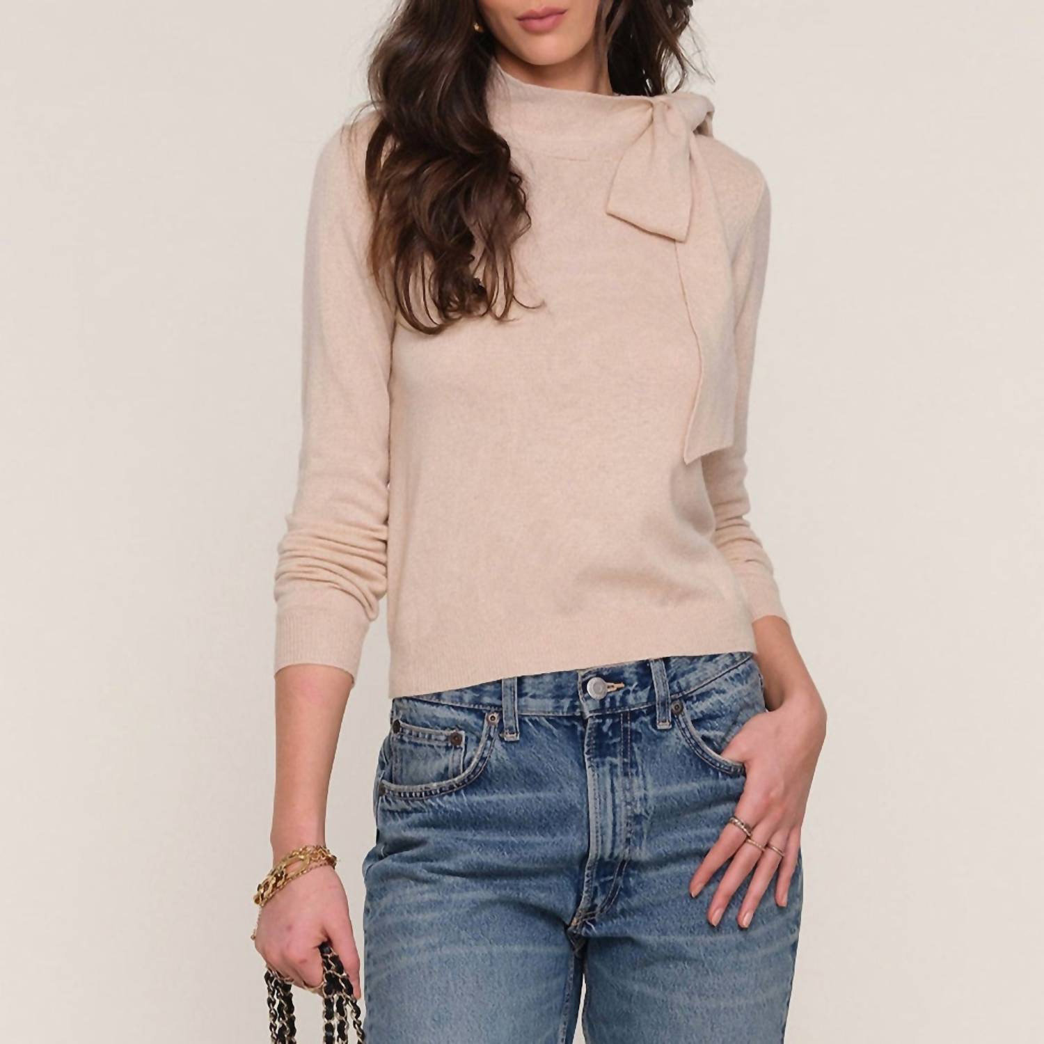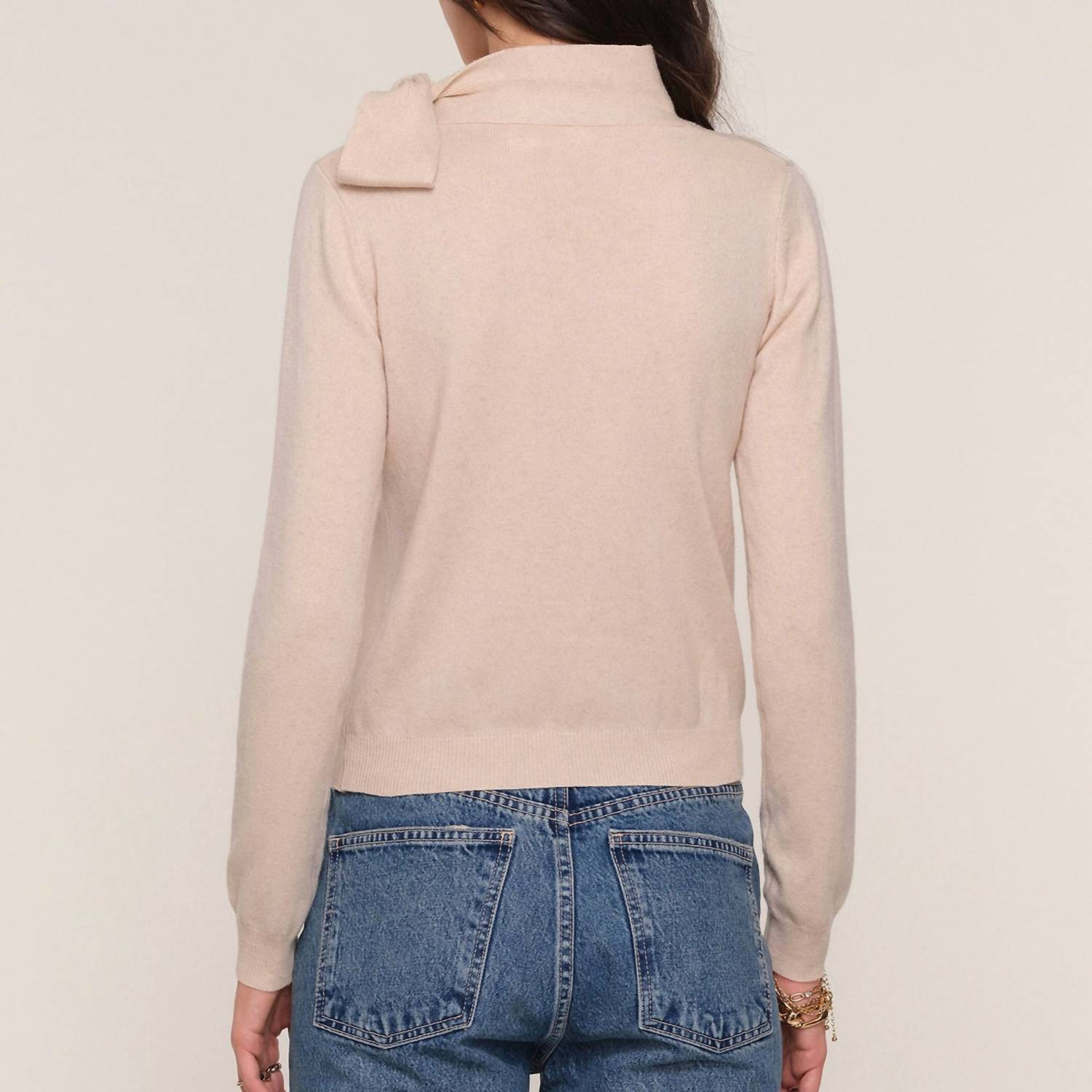 A classic staple that every closet needs. Meet the Lissa Relaxed Fit Sweater by Heartloom, a chic addition to your seasonal wardrobe in a soft Buff hue. This long sleeve sweater is crafted from a luxurious blend of 5% Cashmere, 20% Wool, 27% Polyester, and 48% Nylon, offering a cozy 20.5" length from the high point of the shoulder. Designed with a minimalist mock neck that ties into an elegant bow, it's perfect for Thanksgiving or vacation occasions. Closure: Pull-on. Care: Hand wash and line dry for lasting quality.