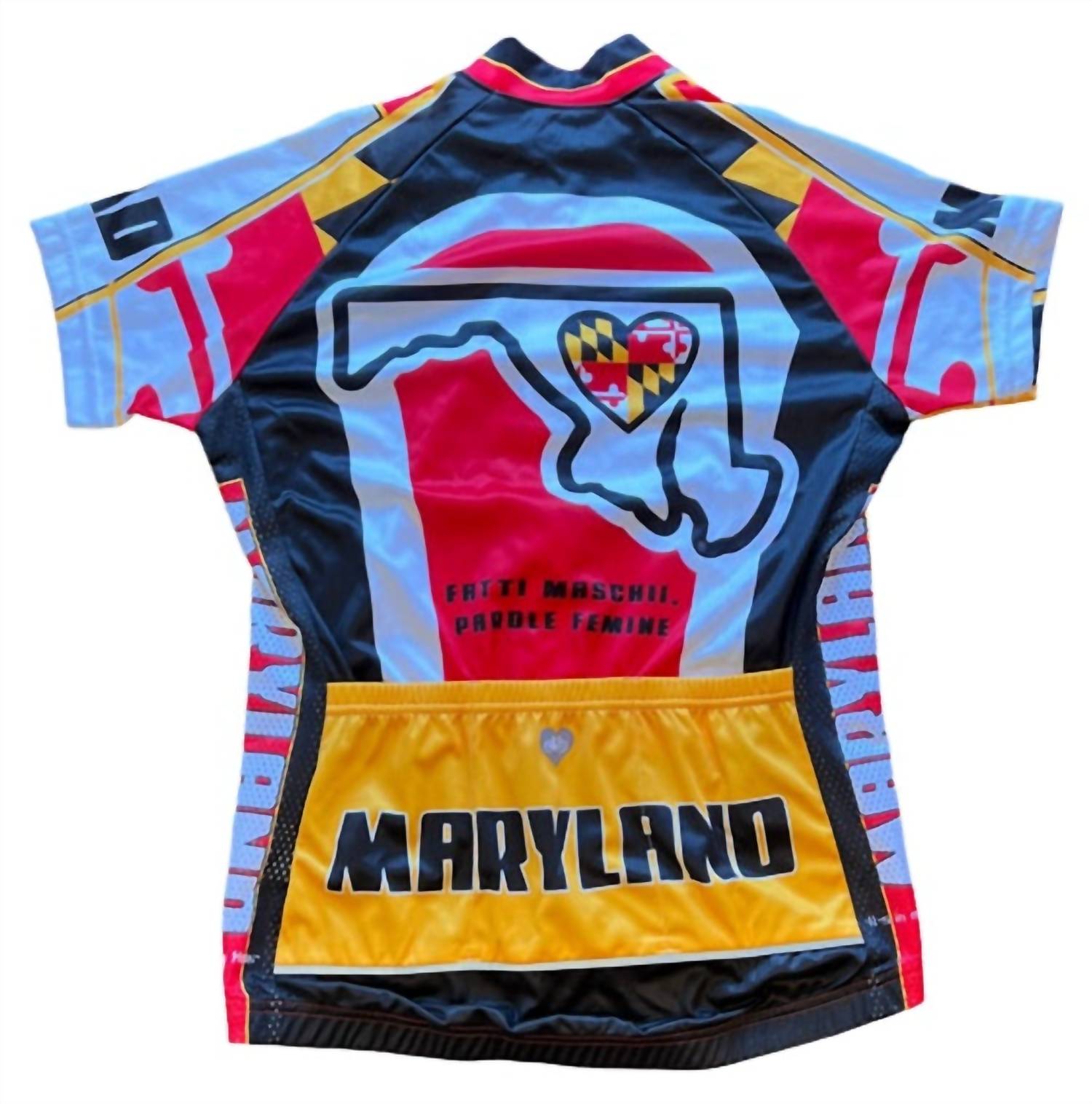 Elevate your cycling attire with the Women's Cycling Jersey by It's In My Heart, offering both style and function in its vibrant Maryland color. Designed for activewear, this jersey features short sleeves and moisture-wicking fabric, complemented by 4-way stretch mesh side panels for ultimate comfort. It includes three rear pockets for practicality and a full-length zip closure. Crafted with attention to detail, this piece ensures you stay cool and comfortable during your rides.