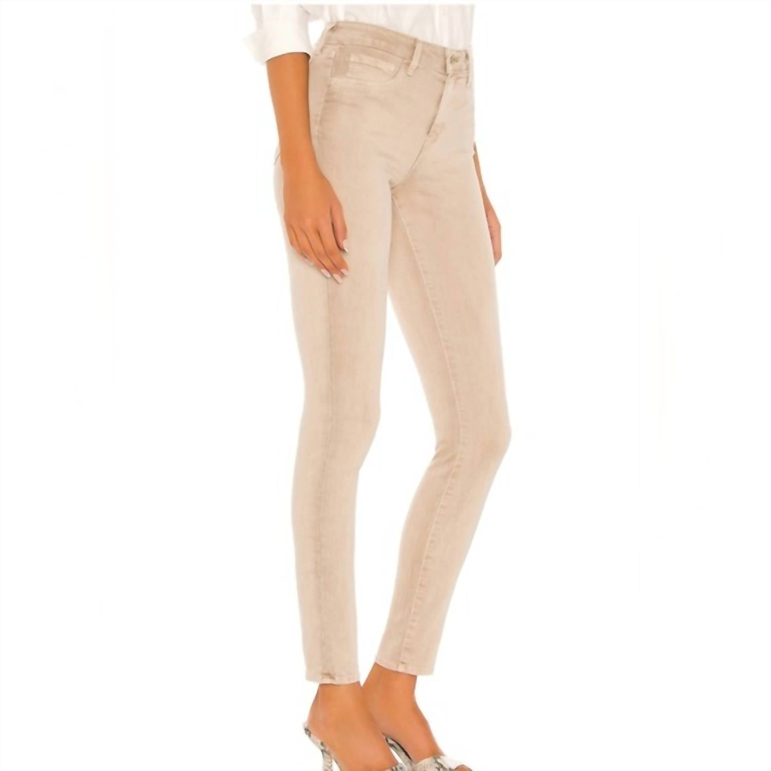 A skinny jean that is both flatering and comfortable. We love this style because it works great with boots, or without! Presenting the Marguerite High Rise Skinny Jeans by L'Agence in a chic Biscuit hue, perfect for a minimalist spring look. These high-rise jeans feature a skinny leg style that tapers from hip to ankle, cinching the waist with a contoured waistband for a defined silhouette. Boasting a 30-inch inseam and high-recovery fabric, they retain their shape without compromising on comfort. Closure: Button closure. Made with practical pockets, they are ideal for both casual days and dinner parties.