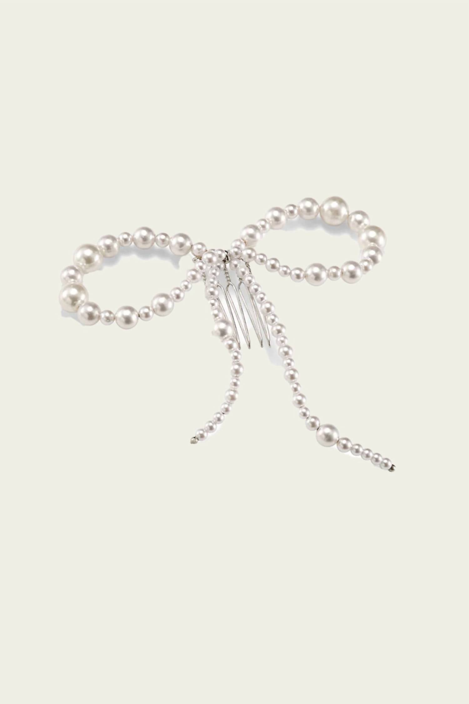 Introducing the Women's Josephine Pearl Bow by Lelet NY, an exquisite hair accessory crafted for elegance. This timeless piece features a beautiful pearl color, making it a sophisticated choice for versatile styling. Imported with attention to detail, it is designed in a convenient one size that fits all.