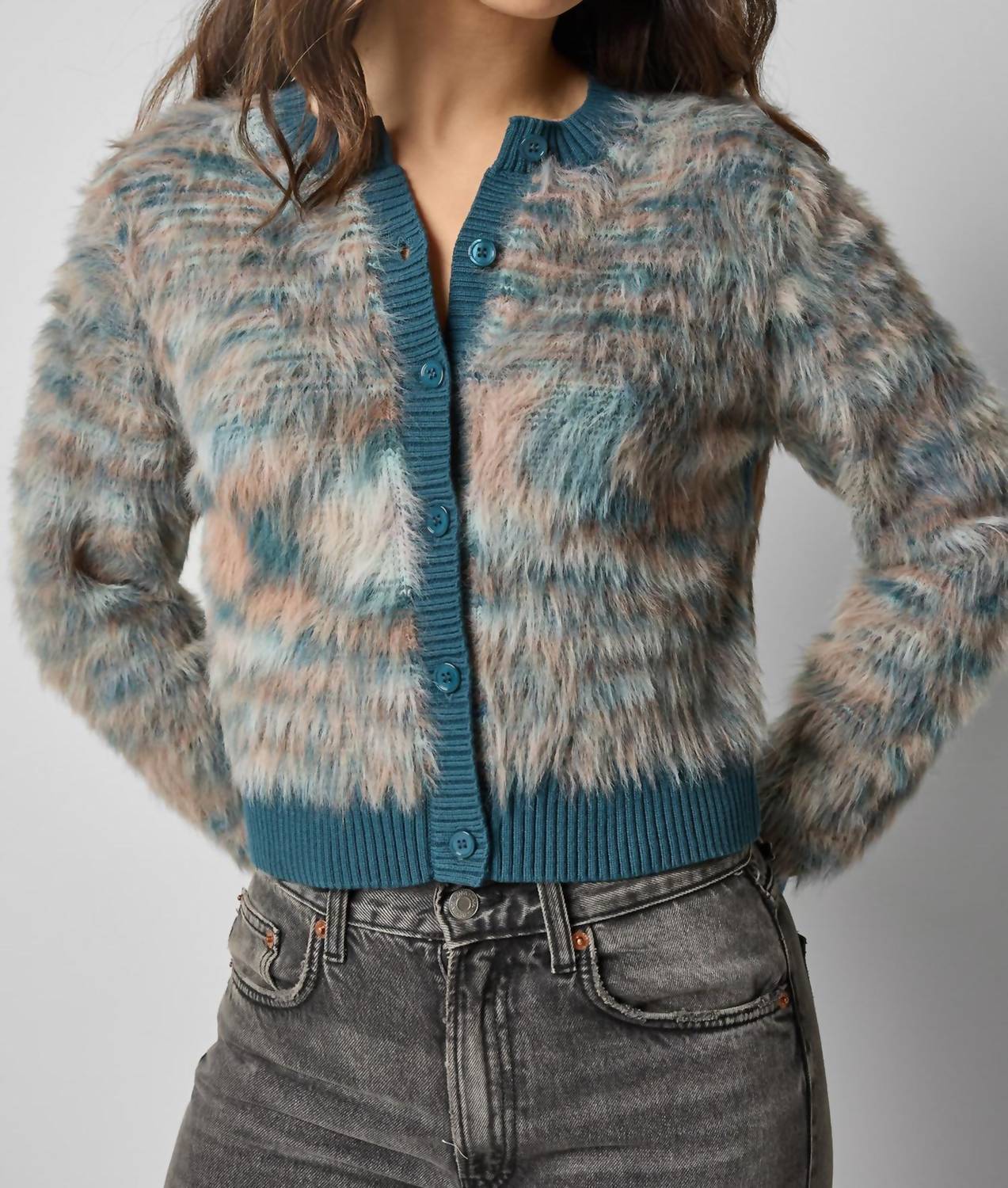 A classic fit that works just as good buttoned as it does left open. The Brushed Crewneck Cardigan by Lilla P offers a sophisticated blend of style and comfort in a textured ivory finish. Featuring long sleeves and a classic crewneck, this cardigan is crafted from a luxurious cotton blend for a soft feel. Closure is achieved through a refined button closure that enhances its timeless appeal. Care instructions recommend dry cleaning to maintain the garment's quality and texture.