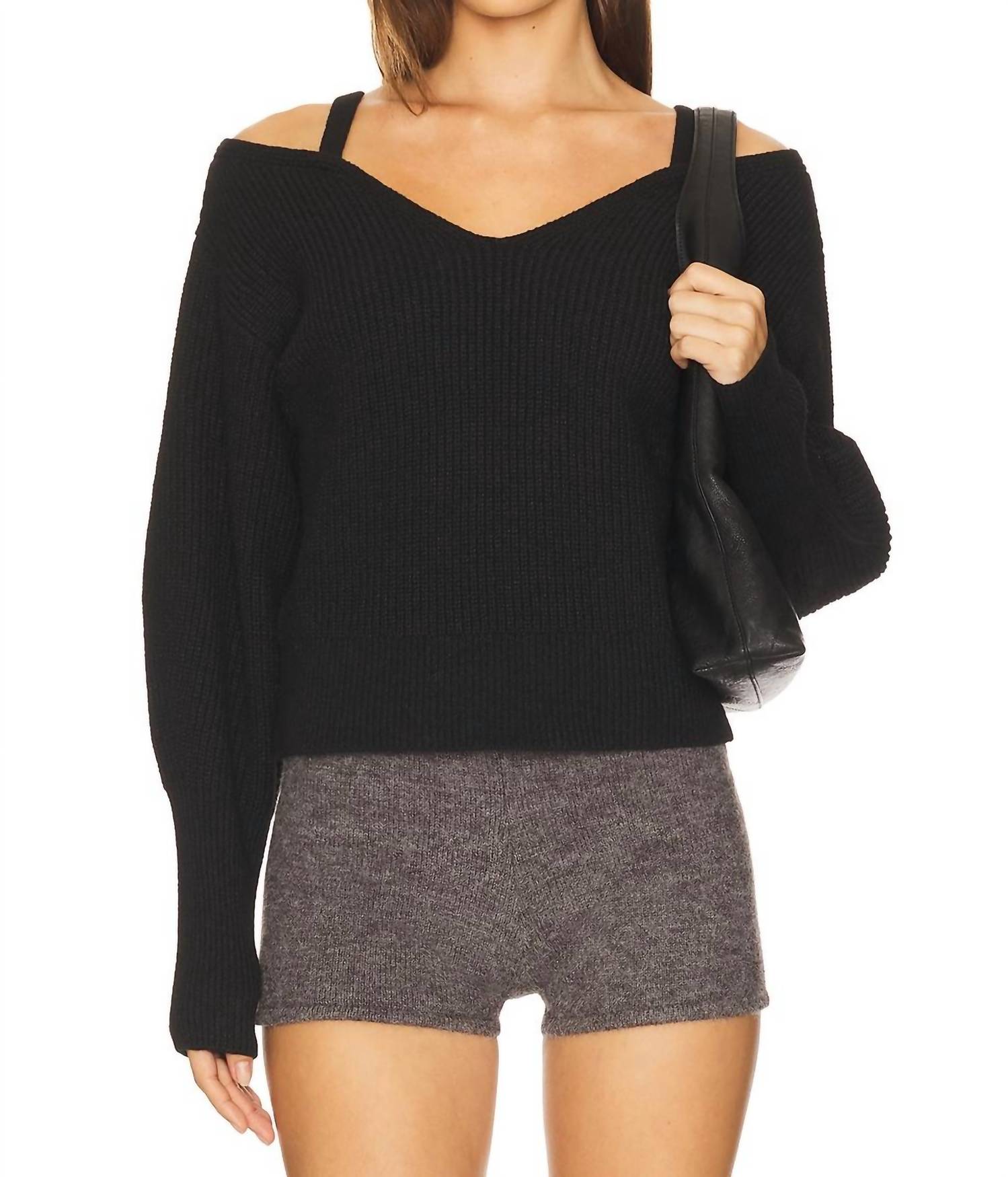 Show just the right amount of skin in the cutest sweater of the season. Discover the Brielle Sweater by LNA, a chic off-the-shoulder piece in timeless black. Featuring long sleeves and crafted from a 92% nylon, 8% lycra blend, this sweater offers a flattering and comfortable fit with its midweight rib knit fabric. Made in the USA, it boasts a convenient pull-on closure for effortless wear. For longevity, hand wash cold and lay flat to dry.