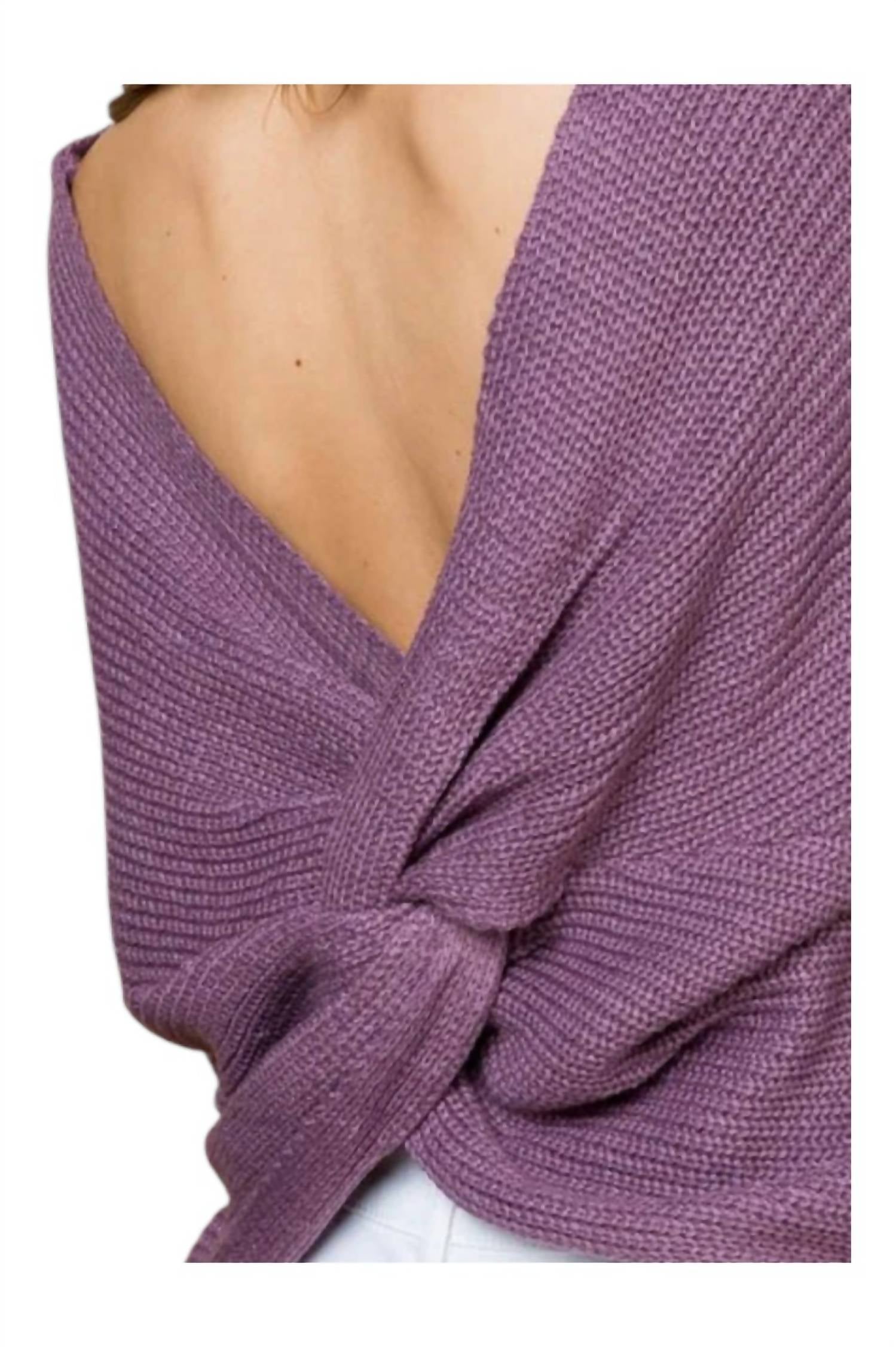 Show a little skin in this perfectly designed off-the-shoulder sweater. Introducing the Twist Sweater by Main Strip, a chic addition to your fall wardrobe in a stunning lilac hue. This versatile piece features long dropped sleeves and a modern boatneck, with a flirty twist design that can be styled front or back. Made from 100% acrylic, it provides cozy comfort with a textured finish. Closure: Pull on.