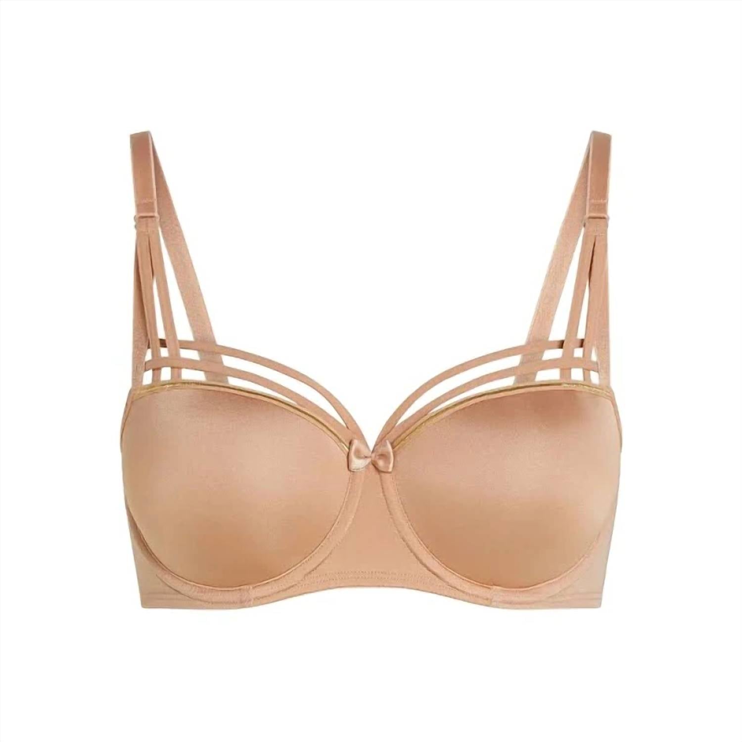 Both pretty and functional. Need we say more? Introducing the Women's Padded Balcony Bra by Marlies Dekkers, a must-have piece in an elegant beige hue. This stylish bra features padded cups, a balcony shape, and a charming bow detail with three distinctive straps, ensuring support and style. Crafted from a sustainable composition of 84% recycled nylon and 16% spandex/elastane. Closure: Hook-and-eye fastening. Care instructions recommend hand washing and laying flat to dry, perfect for your summer wardrobe and Valentine's Day occasions.