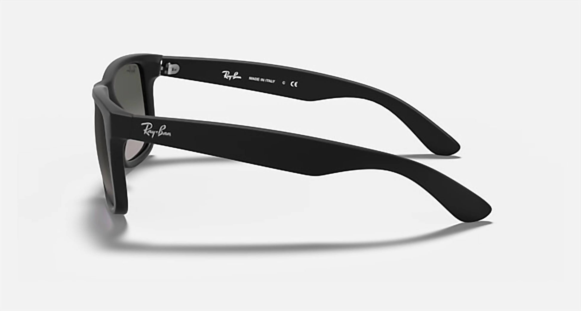 Elevate your eyewear collection with the Men's Justin Classic Sunglasses by Ray-Ban. These stylish sunglasses feature a square frame shape in matte rubber black, crafted from durable nylon for a contemporary look. Enhanced with a gradient treatment, the dark grey lenses provide excellent visual clarity. Perfect for any occasion, these sunglasses are a must-have accessory that combine fashion and function seamlessly.
