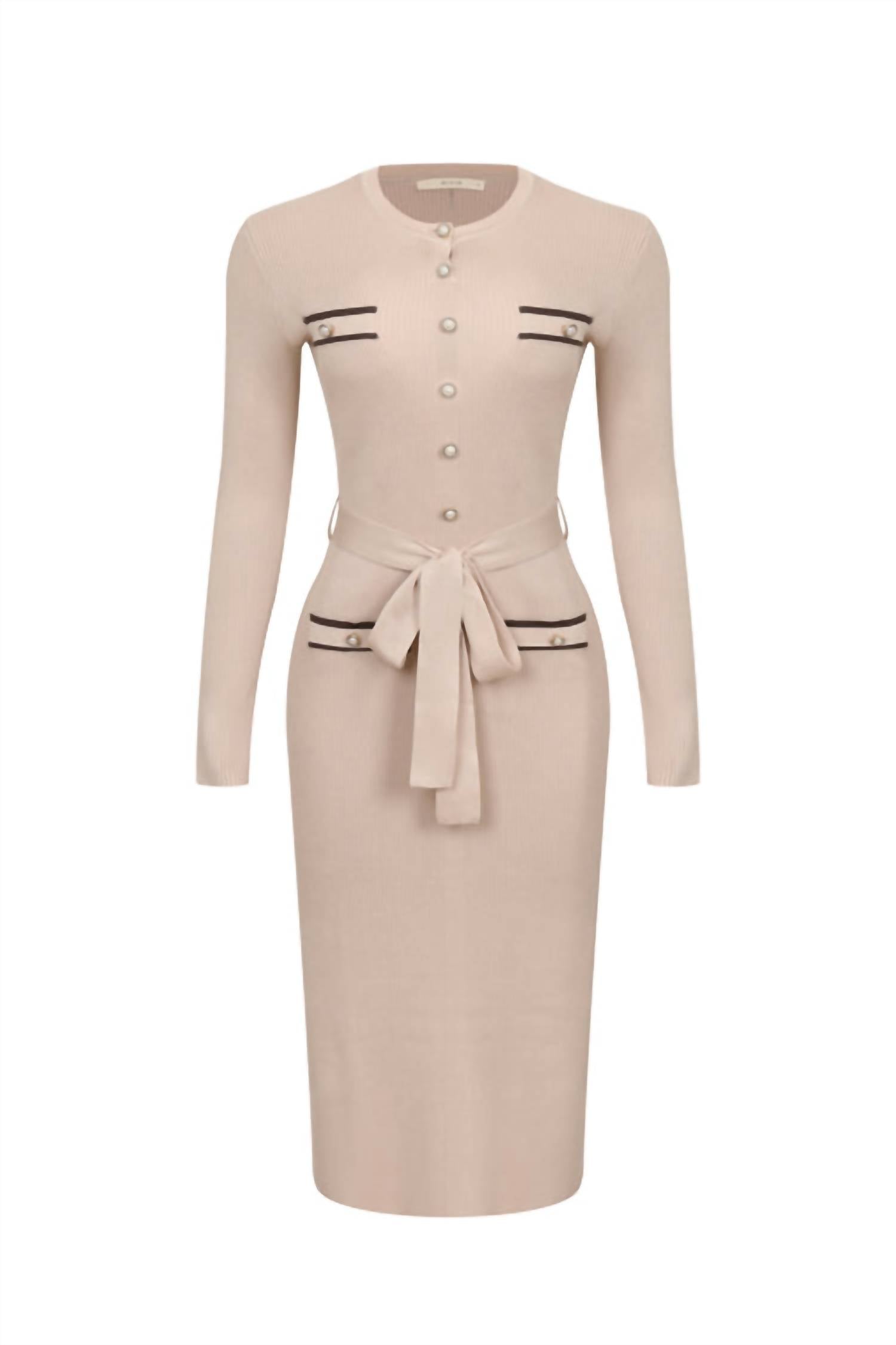 A midi dress so versatile, your options for wearing it are endless. Elevate your holiday party look with the Women's Collarline Knit Midi Dress by RIVIR, crafted in a sleek black textured design. This dress features flattering long sleeves and a comfortable sheath silhouette with a crewneck, perfect for summer occasions. Composition: 70% Viscose, 30% Polyester. Closure: Button closure. Care: Hand wash, line dry.