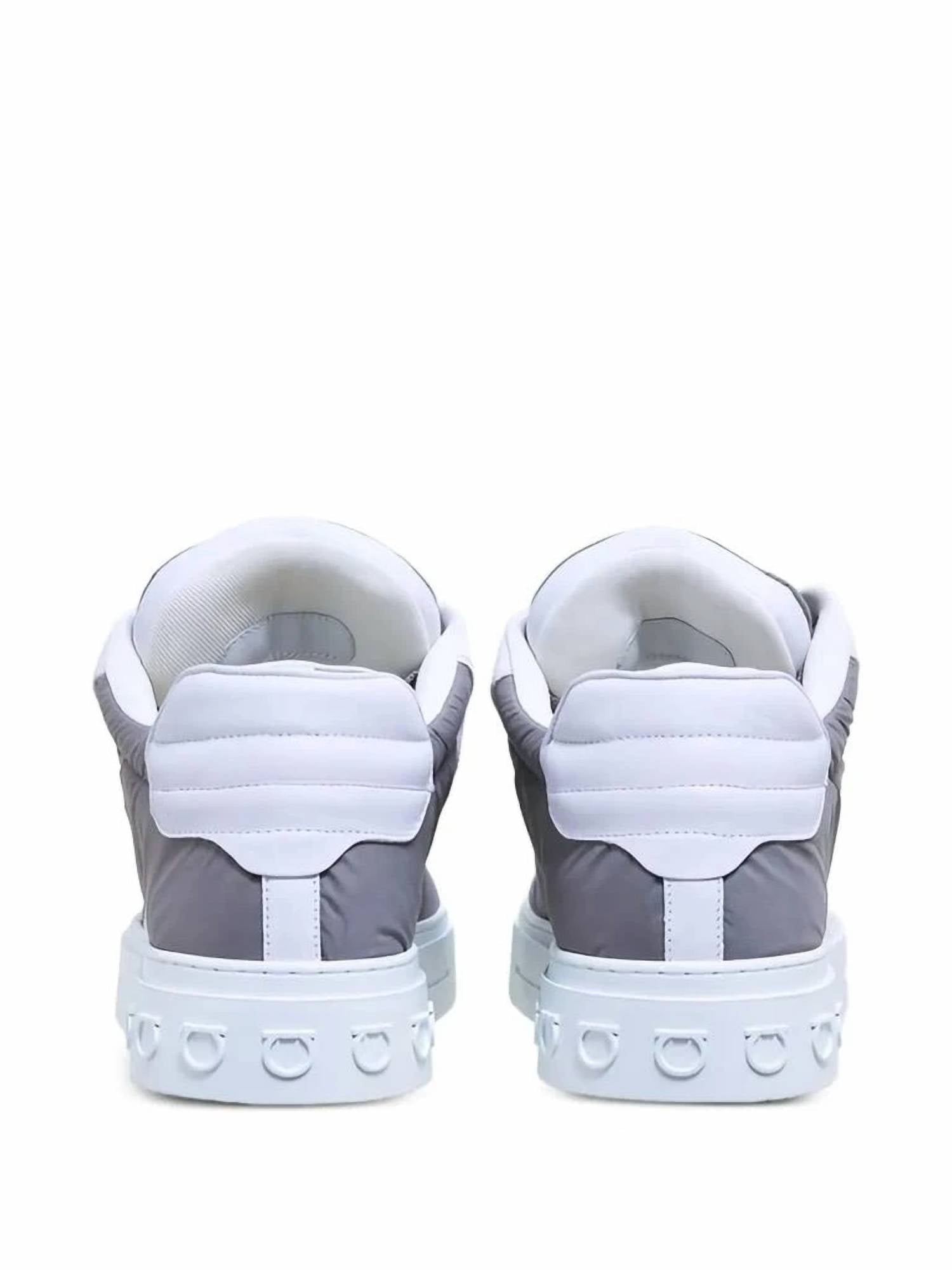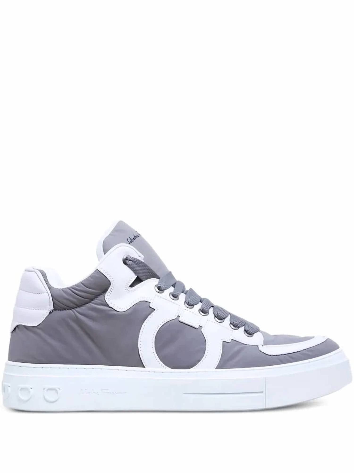 Step into understated luxury with the Men's Alta Lace Up Sneakers by Salvatore Ferragamo, crafted meticulously in Italy. These grey sneakers showcase a classic lace-up fastening, a stylish round toe, and a durable rubber sole with a logo detail. Composition features outer and lining made of 100% fabric, with a 100% rubber sole for reliable traction. Ideal for casual, streetwear-inspired occasions, these sneakers are the perfect spring companion, designed with an elegant flat heel for comfort and versatility.