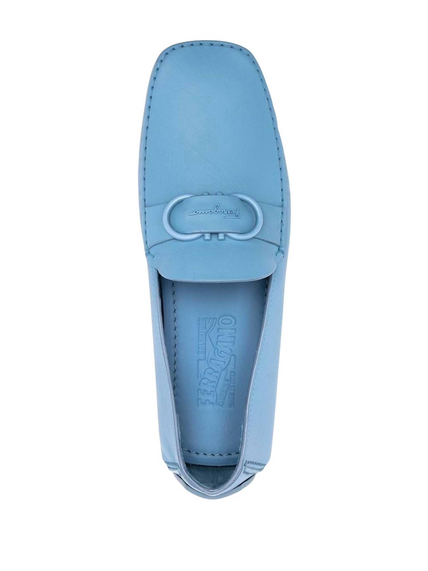 Step into sophistication with the Men’s Palinuro Gancini Loafers by Salvatore Ferragamo. Crafted in Italy from 100% leather, these cornflower blue loafers feature a distinctive Gancini plaque and a sleek square neck design. The slip-on style and rubber sole ensure effortless comfort for any occasion, from dinner parties to New Year's Eve celebrations. Embrace the essence of quiet luxury with these carefully crafted, flat-heeled loafers that are as stylish as they are comfortable.