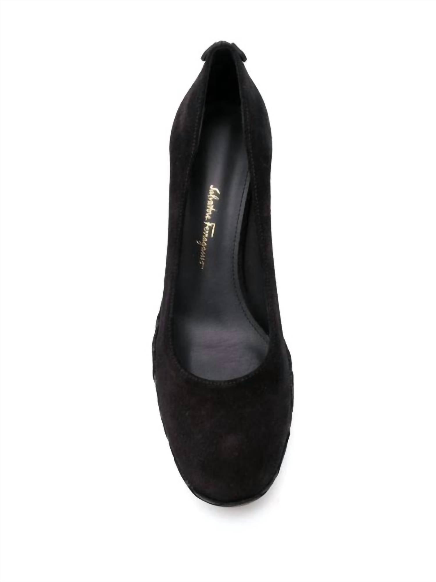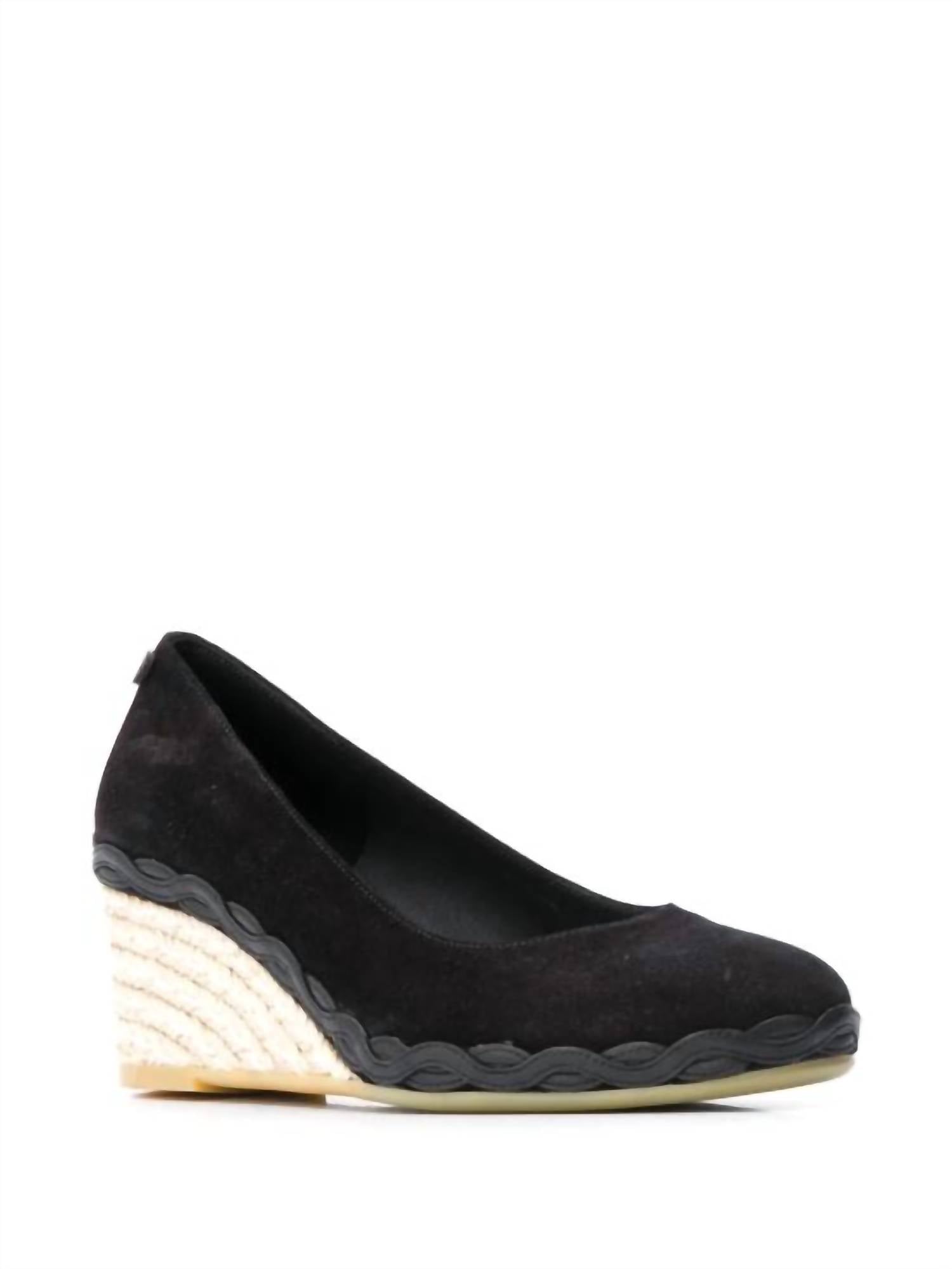 Timeless wedges that will be relevant season after season. Step into elegance with the Women's Capraia Espadrille Wedge Pumps by Salvatore Ferragamo, designed for the modern minimalist. Crafted from premium black calf leather, these pumps feature a suede and leather composition, adorned with a chic scalloped edge and a round toe for timeless appeal. Perfect for a dinner party, these espadrilles boast a high braided raffia wedge heel ensuring both style and comfort. Indulge in sophistication, ideally paired with your spring and New Year's Eve ensembles.