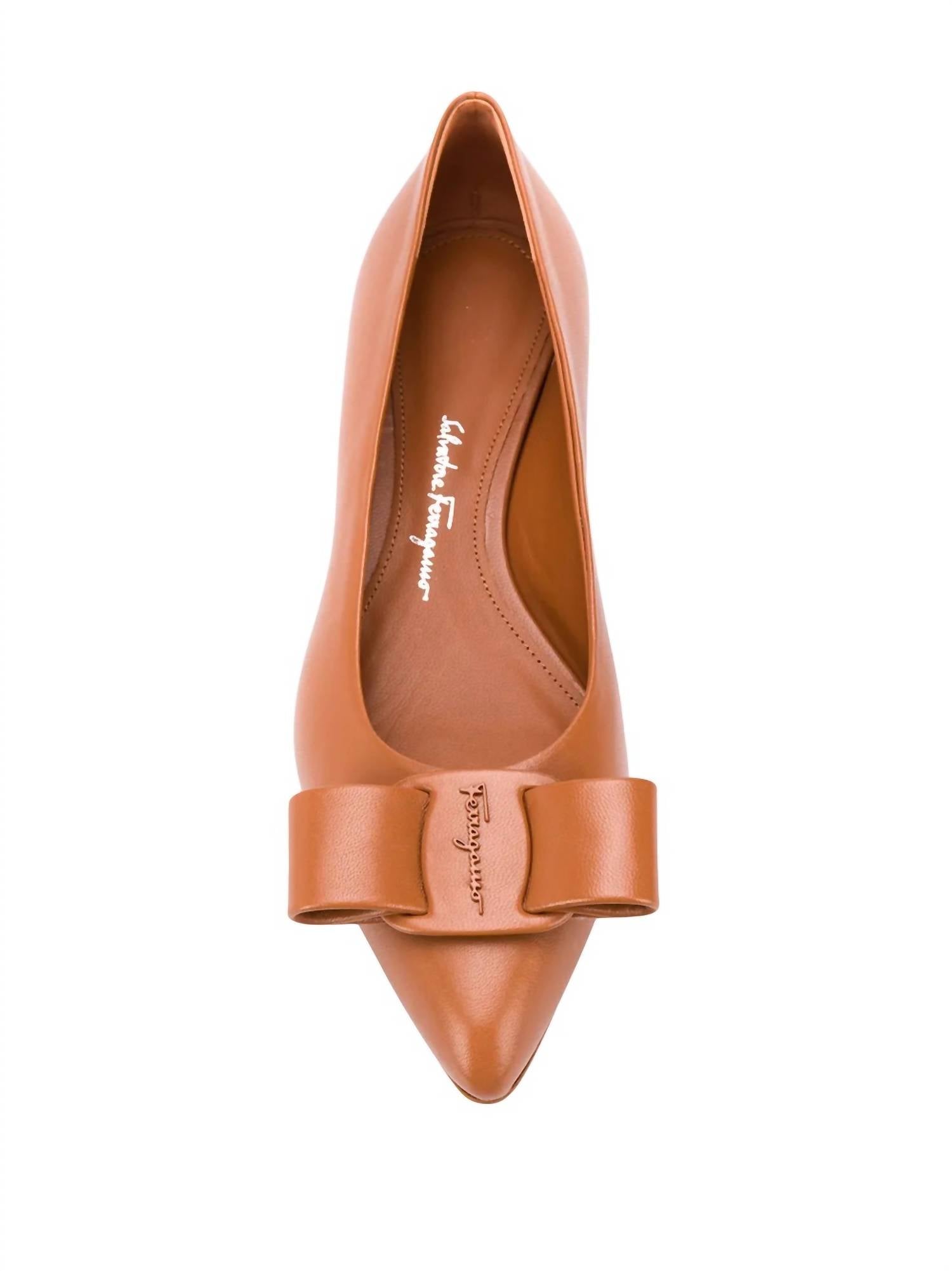 A classic loafer that is both comfortable and polished. The Women's Vara Bow Ballet Flats by Salvatore Ferragamo elegantly enhance your shoe collection with their minimalist design. Crafted in Italy, these brown leather flats feature a pointed toe, signature bow detailing, and a sleek slip-on style. They boast a fully leather composition including the outer, lining, and flat leather sole, ensuring comfort and sophistication. Ideal for a dinner party or a New Year's Eve gathering, step out in style with these timeless flats.