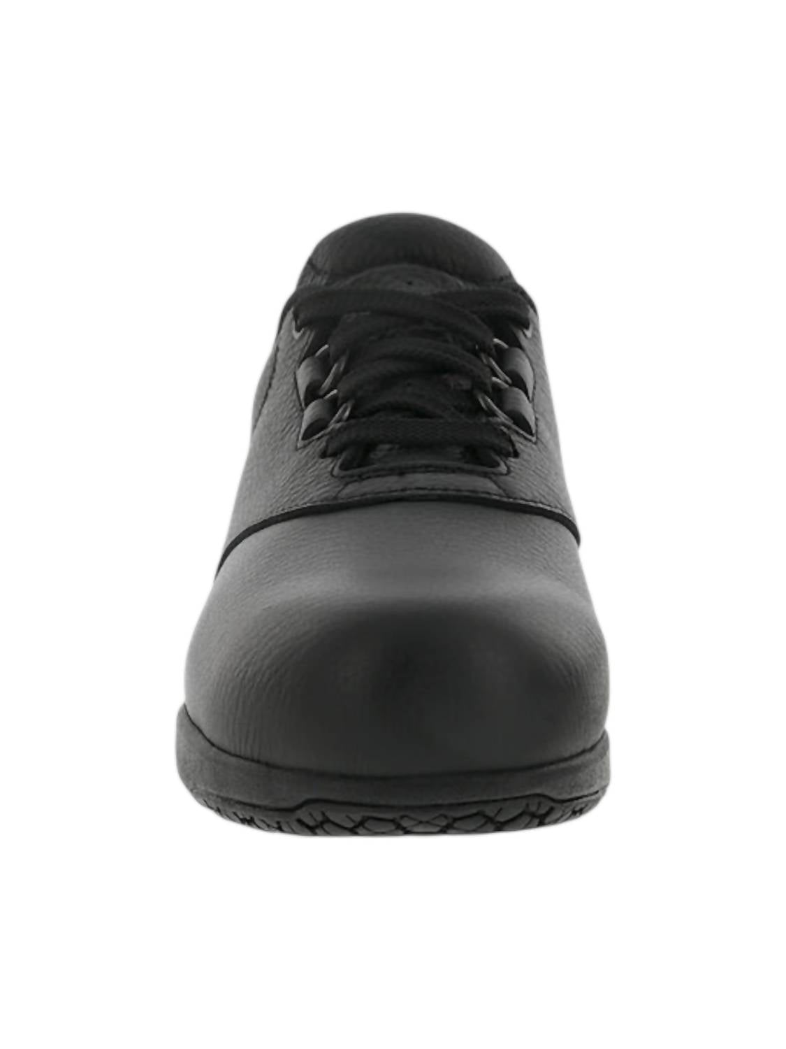 Cute, functional, and comfortable. These sneakers check all the boxes. Experience unmatched comfort and safety with the Women's Liberty Non Slip Lace Up Shoe by SAS, a must-have for the workplace. Crafted from water-resistant SAS Waterguard™ leather, this shoe boasts a heel height of 1.25 inches and features a removable SAS Cool Step™ footbed, ensuring all-day dryness and comfort. The slip-resistant SAS X-Tra Grip™ Sole is designed to conquer wet and oily work surfaces, complemented by TRIPAD® Technology for shock absorption and support. Effortlessly adjustable with the SAS EZ Lace® System, this black sneaker is Medicare approved, promising both functionality and style.