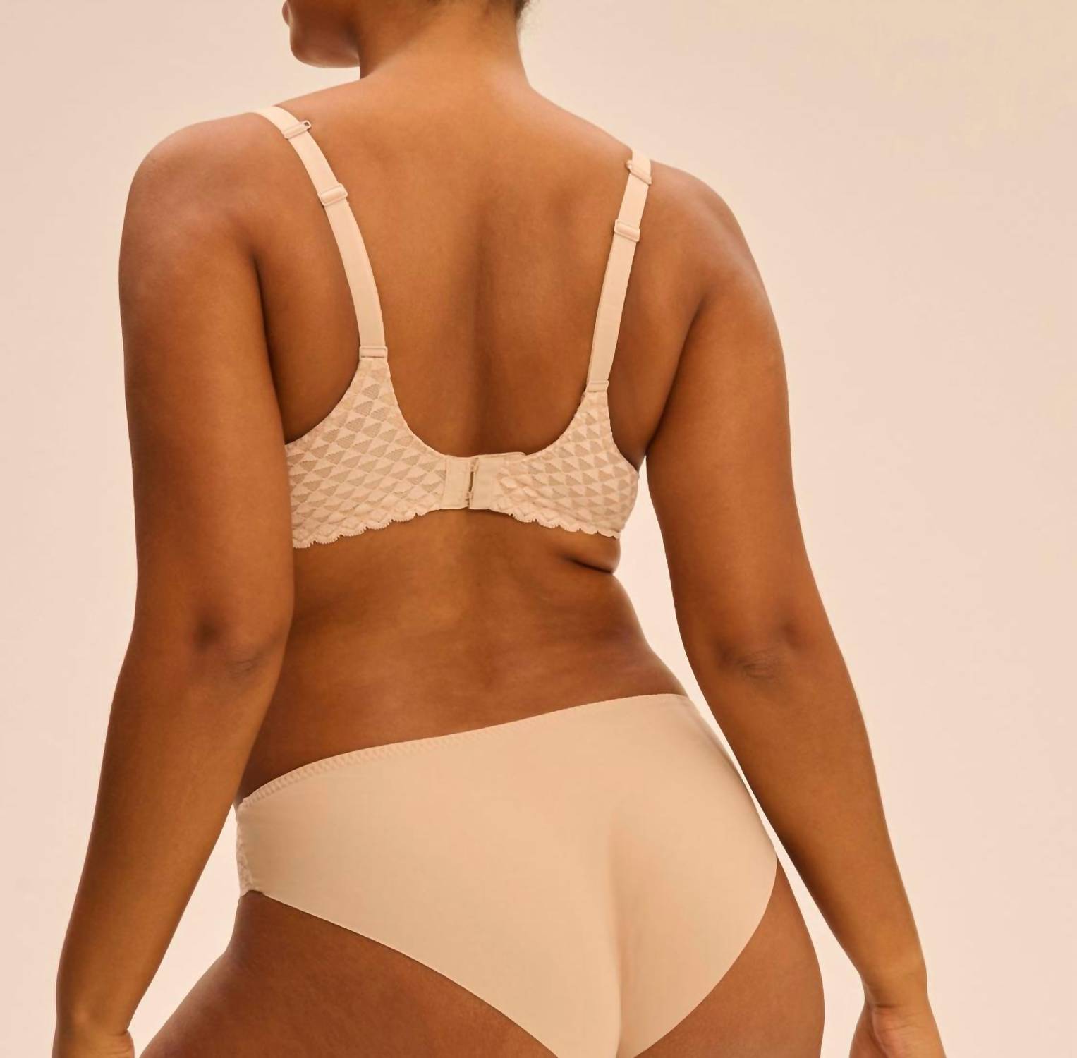 The most comfortable and stylish bra that you'll reach for daily. Introducing the Simone Perele Subtile 3D Light Padded Plunge Bra, a must-have in a delicate pink shade for everyday elegance. This women's bra features a plunge t-shirt design with underwire for smooth support and scalloped lace detailing for a feminine touch. Its signature 3D spacer cups, composed of 57% polyester, 29% polyamide, and 14% elastane, provide breathable, lightweight wear with a textured pattern. Enjoy the versatile strap options for classic or criss-cross styling, and maintain its quality with hand washing and laying flat to dry.
