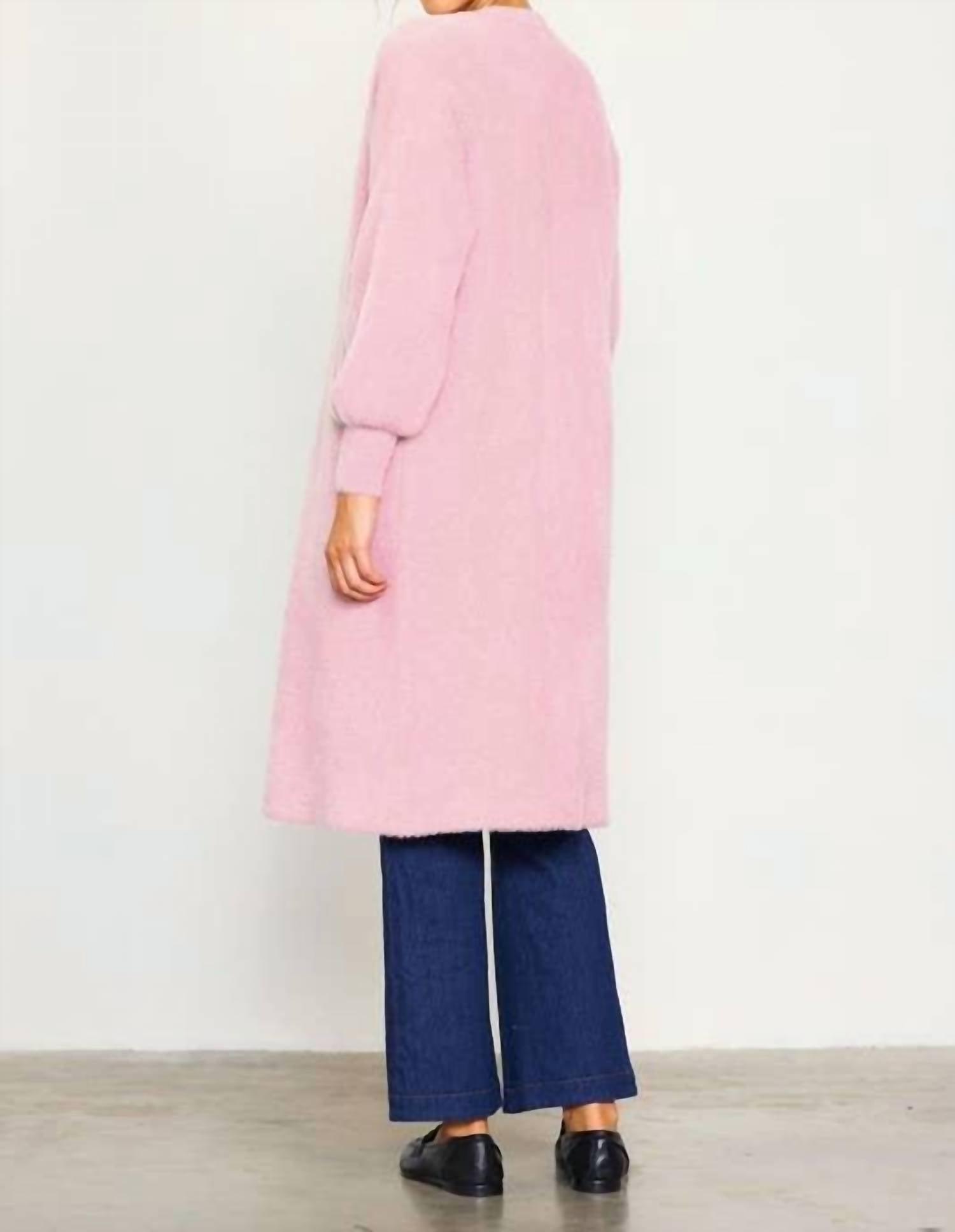 Throw this adorable cardigan over any cami or tank top. Introducing The Casey Cardigan by SKIES ARE BLUE, a charming addition to your wardrobe with its long sleeves offering a cozy fit. Crafted with a textured pink material, this cardigan brings a playful yet minimalist vibe to any holiday party ensemble. Designed with convenience in mind, it features a pull-on closure and practical pockets for added functionality. Suitable for fall, fitting true to size.