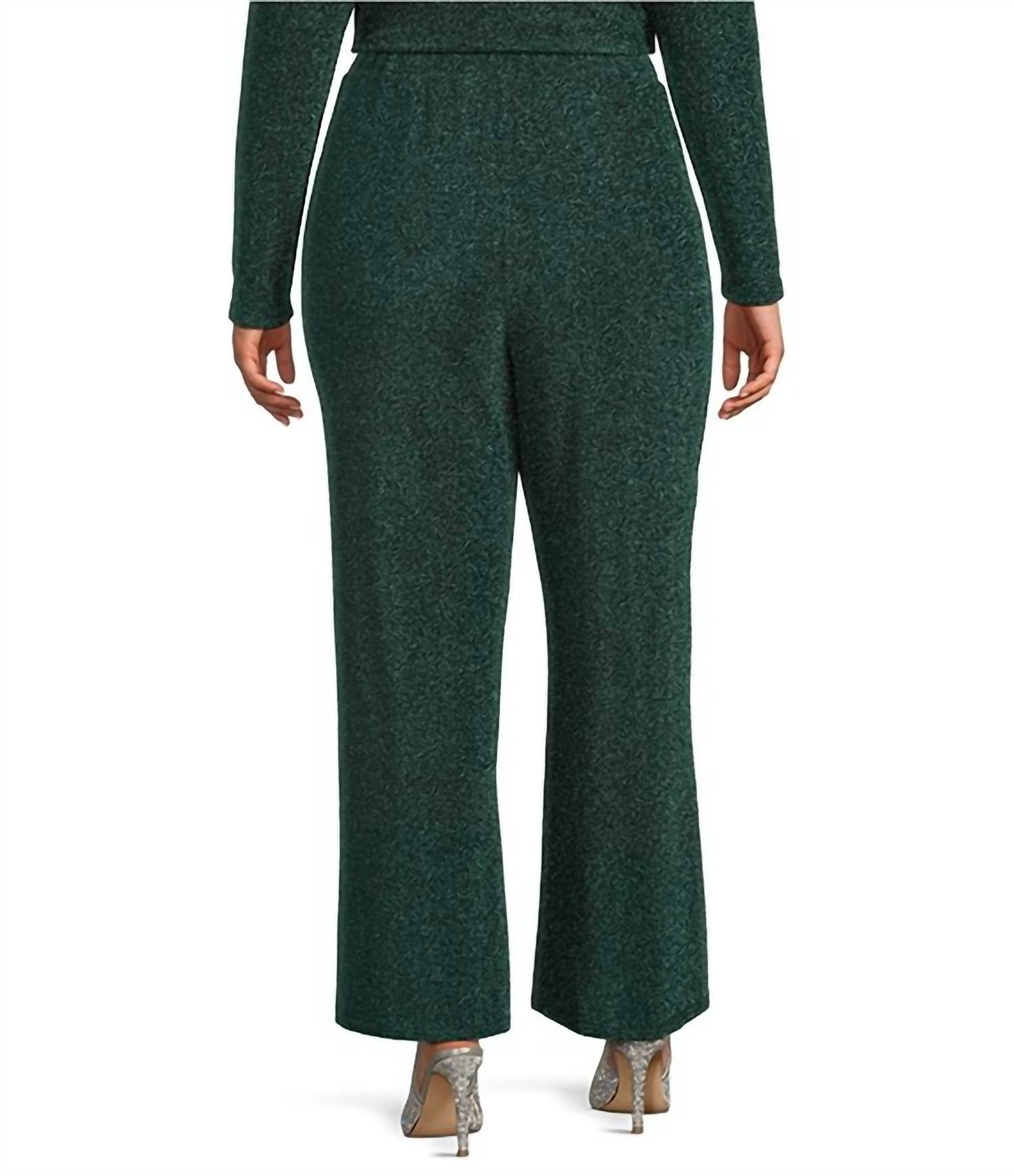 Enhance your holiday wardrobe with the Metallic Lurex High Waist Wide Leg Pants by SKIES ARE BLUE, crafted in a striking hunter green. These textured pants showcase a relaxed high-rise waist and a sophisticated wide-leg silhouette. Made from a luxurious blend of rayon, polyester, and spandex, the pull-on design ensures comfort without compromising on style. Care is simple with hand wash and line dry instructions, making them a standout piece for any event.
