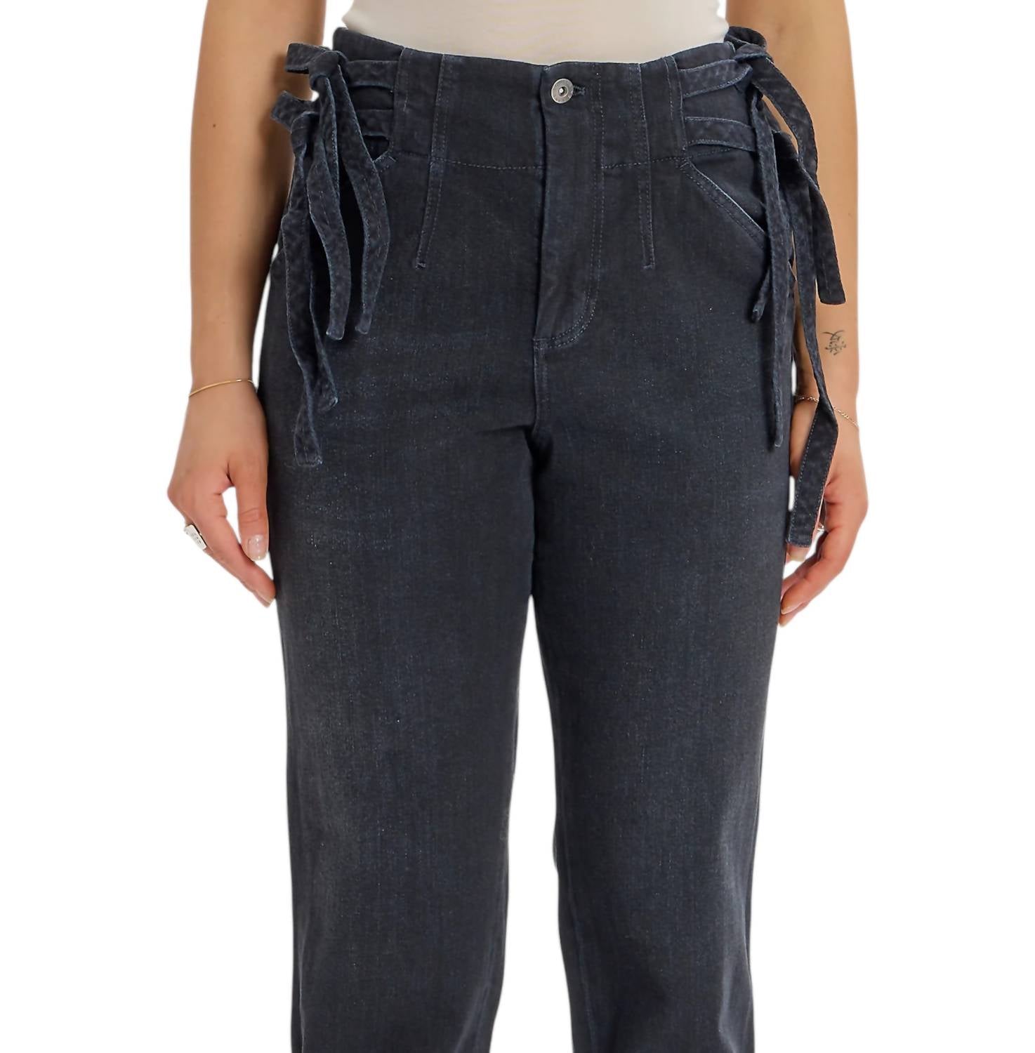 Elevate your dinner party attire with the Sydney Side Tie Pants by SOMETHING NAVY, crafted for the minimalist woman who values style and comfort. These black trousers feature a high-rise waist and tapered leg, complete with a convenient button closure and practical pockets. Designed in a solid pattern, they effortlessly blend into any sophisticated wardrobe. Care for them with a machine wash and lay flat to dry.