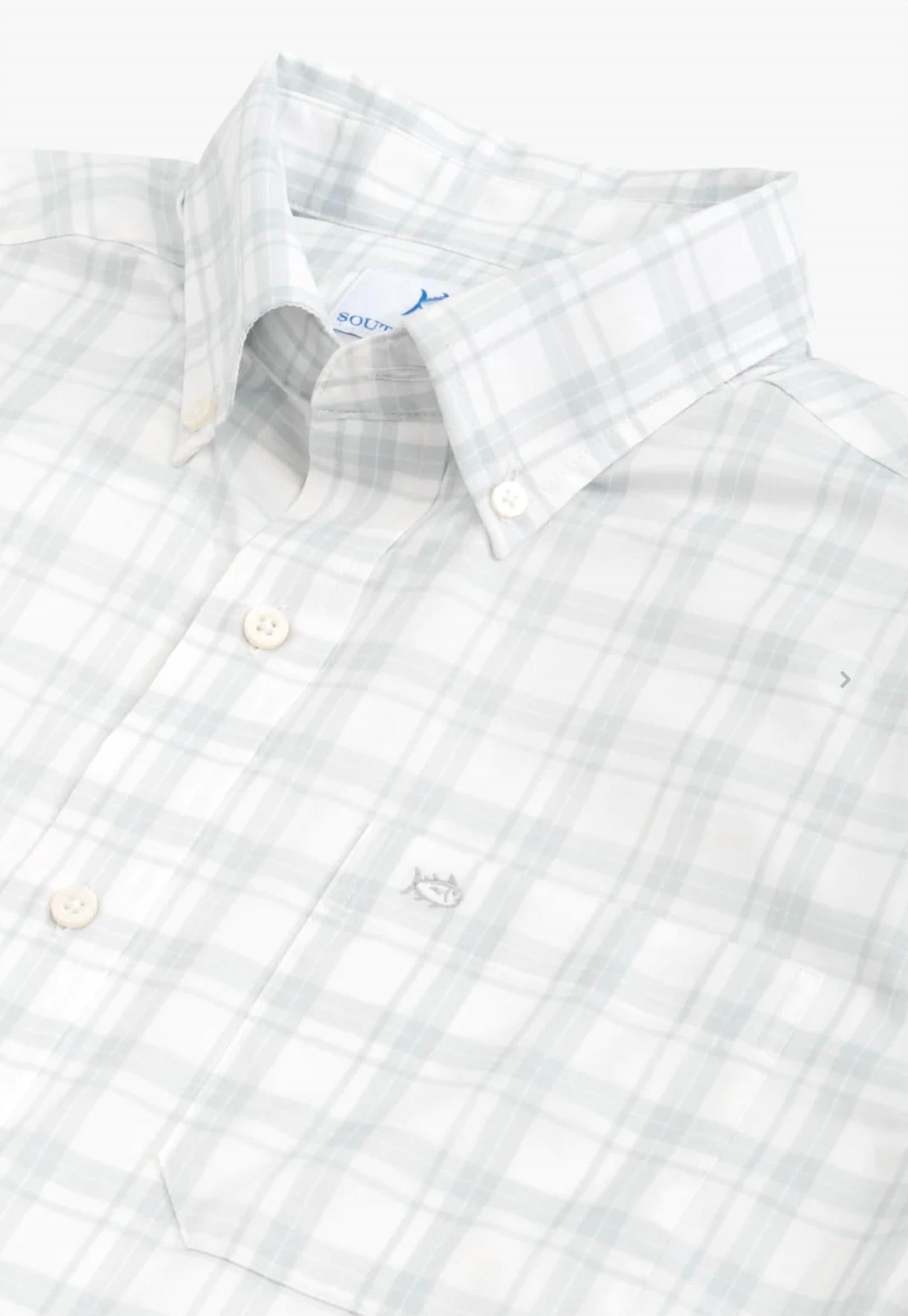 Elevate your holiday wardrobe with the Long Sleeve Brrr Ramsey Plaid Sport Shirt by Southern Tide. This men's shirt in classic white features a stylish plaid and check pattern, complete with a collar neckline and practical pockets. Made from a nylon blend, it ensures comfort and durability. Closure: Button closure. Perfect for Thanksgiving or a holiday party, it's a must-have for the spring season.