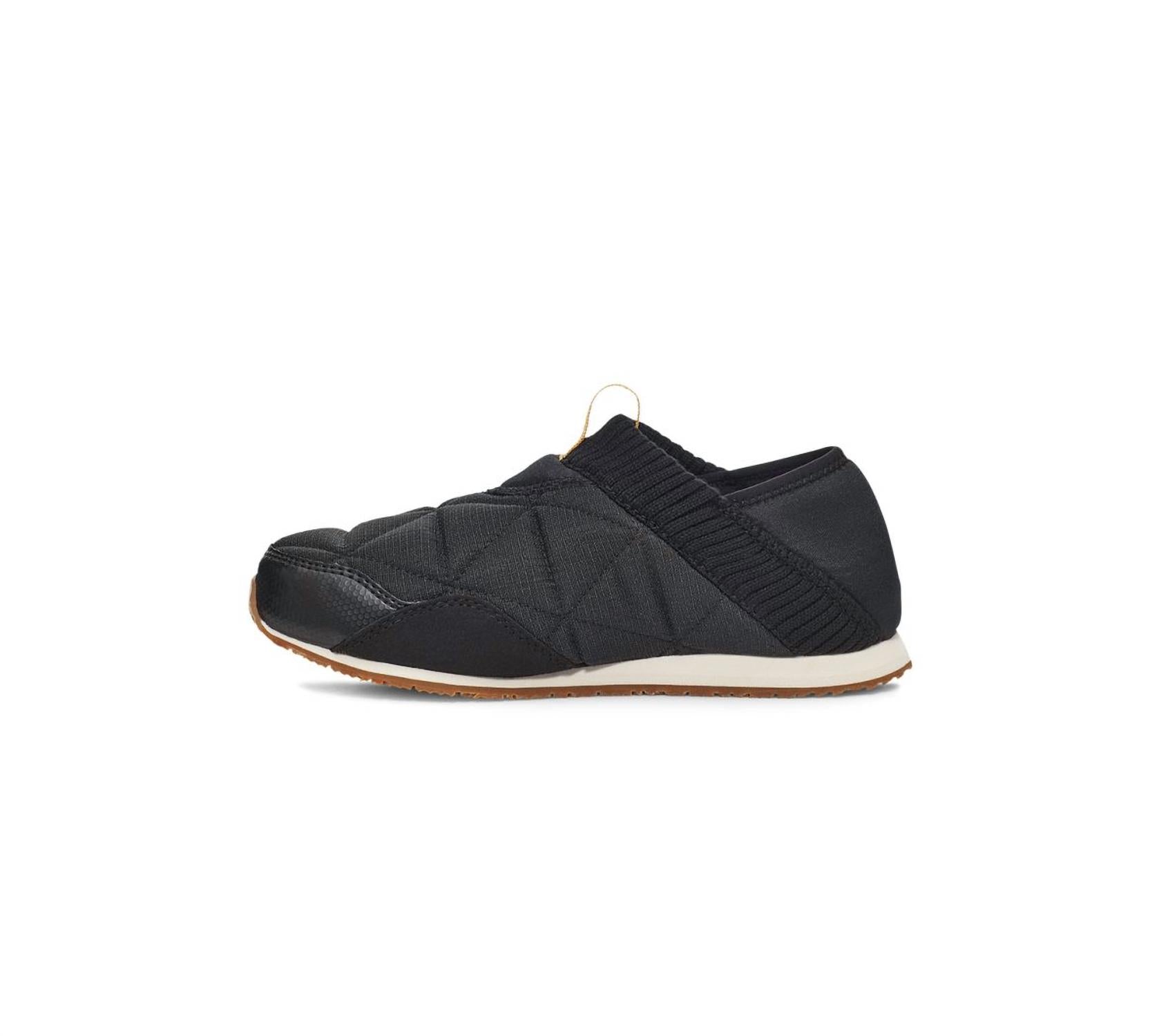 A preppy yet feminine take on the classic loafer. Introducing the Women's ReEmber Slip On Shoes by Teva, your stylish companion for chilly days. Featuring a 100% recycled ripstop upper with a polyester rib knit collar and collapsible heel, this versatile piece ensures easy wear. The water-repellent treatment keeps you dry while the responsive PU footbed and recycled EVA midsole provide comfort. Finished with a recycled rubber outsole for durability, these shoes are as earth-conscious as they are comfortable. Perfect for all-day wear, town outings, or relaxing at the campground.