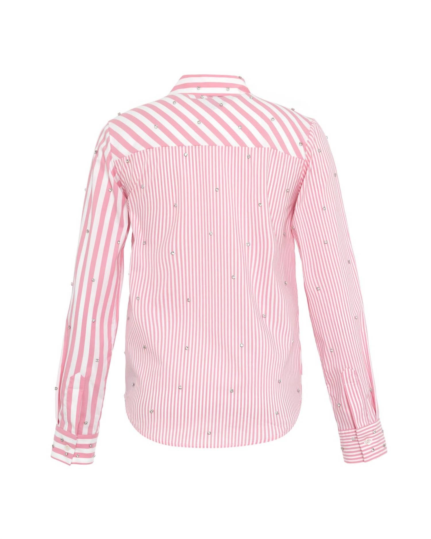 A classic button down shirt that will never go out of style. Discover the Women's Echo Mix Stripe Pearly Shirt by THEO the Label, a perfect fusion of playful and polished design. With its long sleeves and striking multi-stripe pattern, this cotton blend shirt is enhanced by exquisite hand-applied embellishments, including pearls and beads. Color: Lantana/Crystal. Closure: Button closure. Care: Dry clean only.