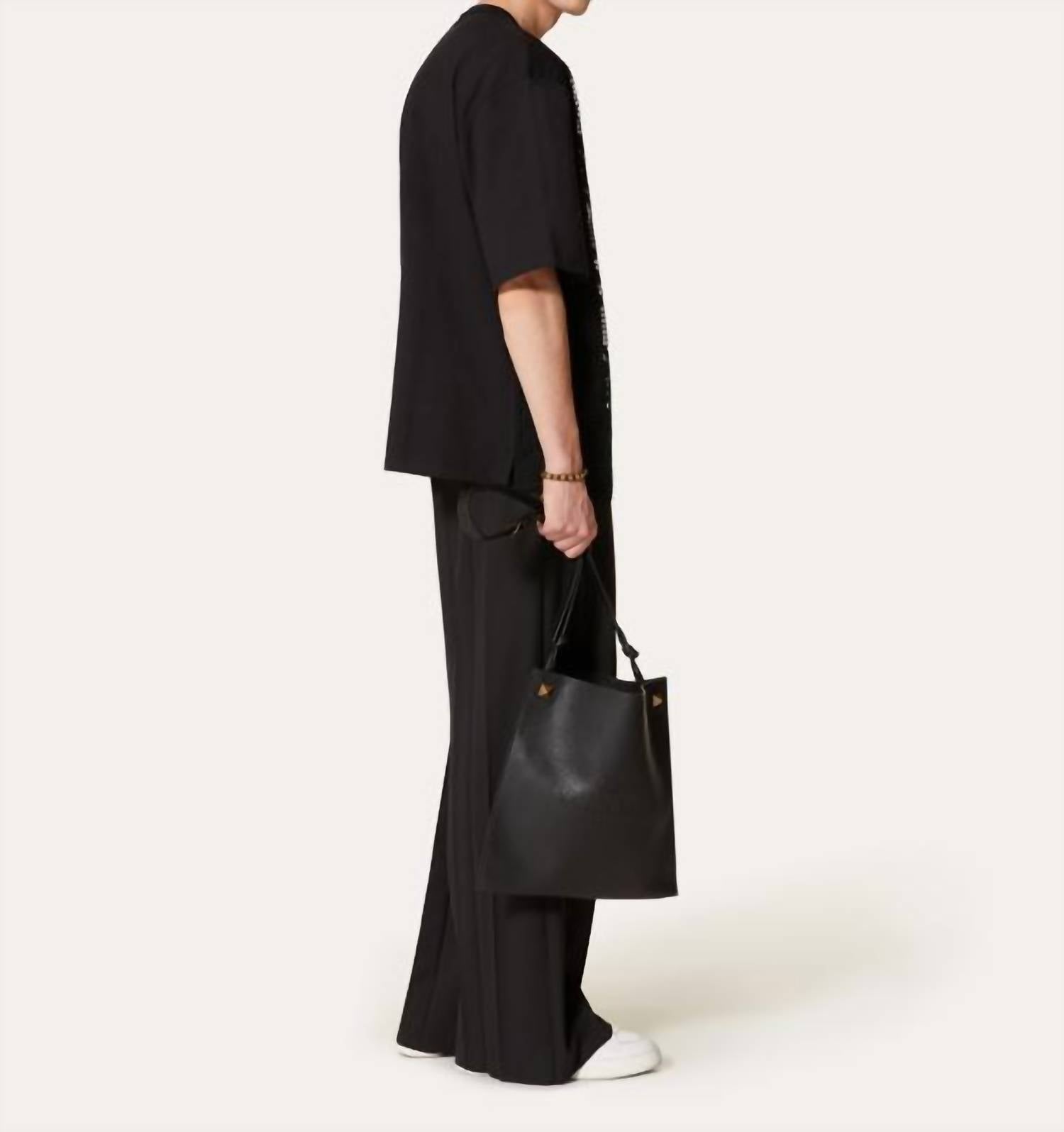 Introducing the Short Sleeve Crochet T-shirt by Valentino, a minimalist piece crafted for a stylish spring outing. This black crewneck tee boasts a front crochet embroidery piece complemented by its simple solid pattern. Composed of 100% cotton, it offers premium comfort and is proudly made in Italy. Closure: Pull on. Model is 187 cm tall and is wearing size M.