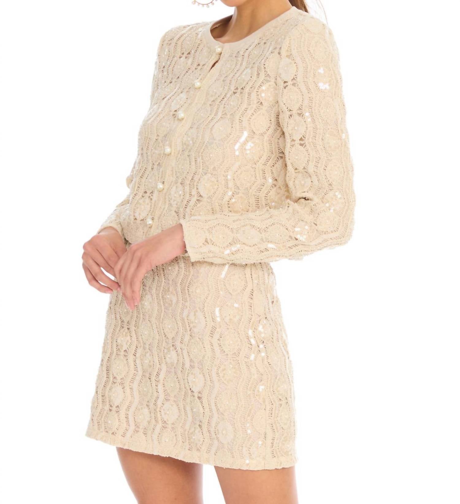 A classic fit that works just as good buttoned as it does left open. Elevate your wardrobe with the Beaded Mariana Cardigan by ALLISON NEW YORK, a stunning piece in an elegant sand hue. This cardigan features long sleeves and exudes artistry with its handcrafted, textured design and intricate beadwork. Closure: Button closure. Care: Hand wash, lay flat to dry. Perfect for both spring cocktail parties and casual outings.